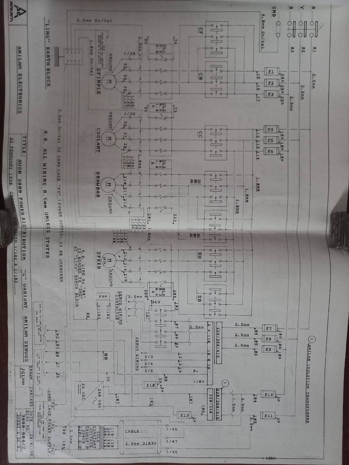 Mi Avon Mill with Anilam GXM contro l served me well until one day it did'nt. First the one servo driver failed. The machine uses Baldor (i think) DC servo motors with tacho and encoder feedback. I replaced the drive and the machine was running OK. At some point I re-soldered some of the Anilam control cards, as the machine was acting unpredictably and I suspected dry joints. I decided it was no longer useable when the Z-axis had a runaway and crashed a tool into my manual tool setter. (coming to think of it, this could also have been an encoder problem)