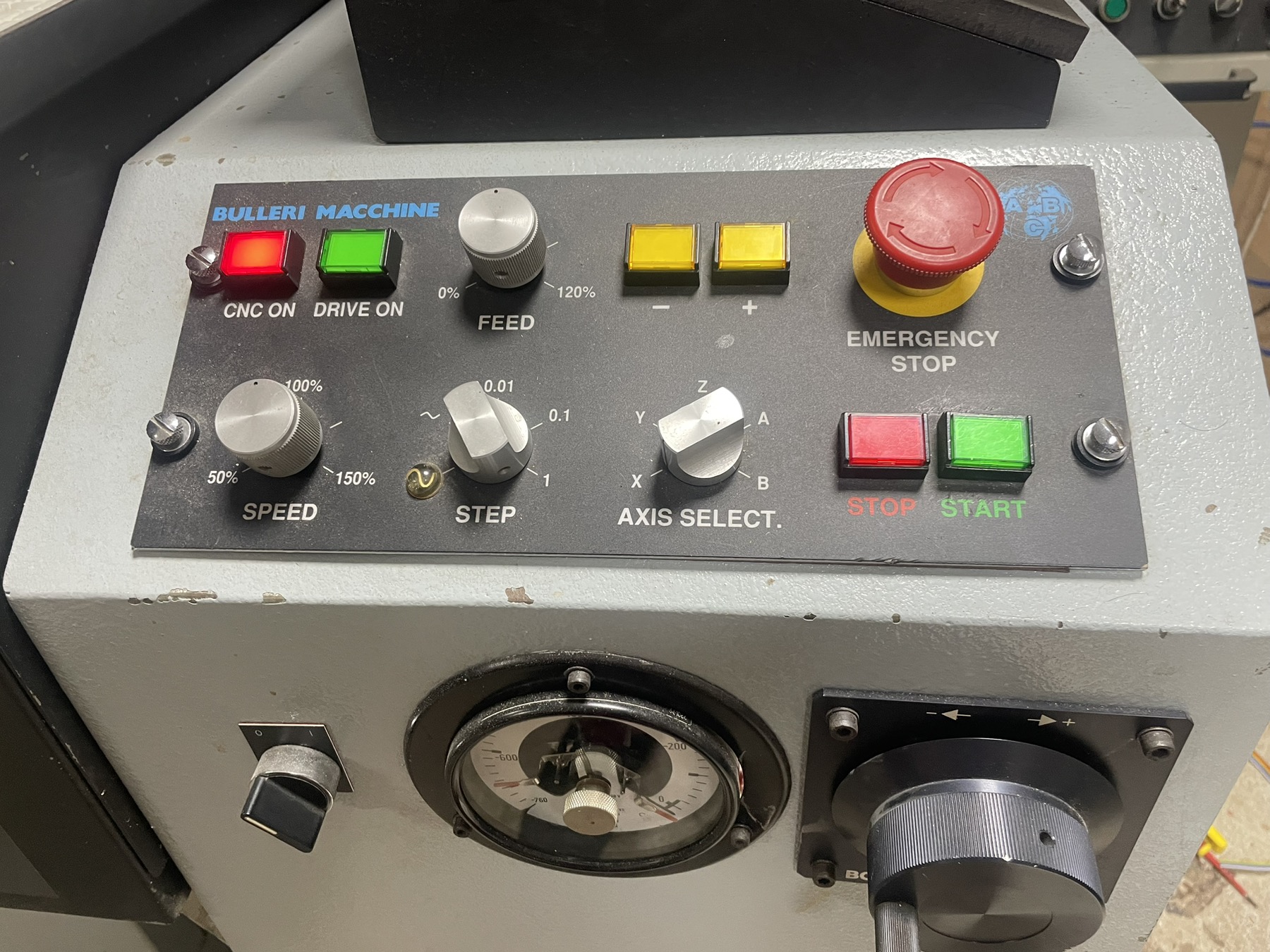 Start with the simple buttons and switches (and E-Stop); then worry about the dials, which are more complicated.
