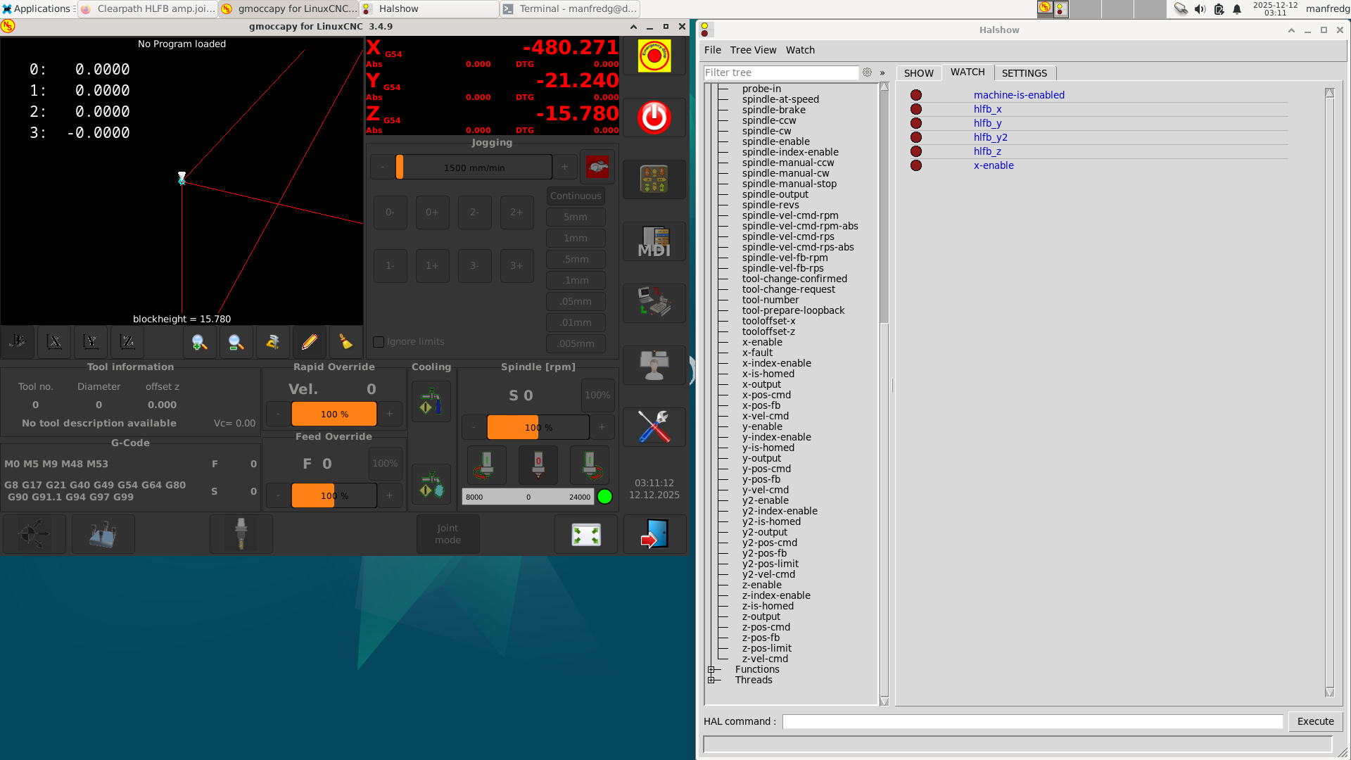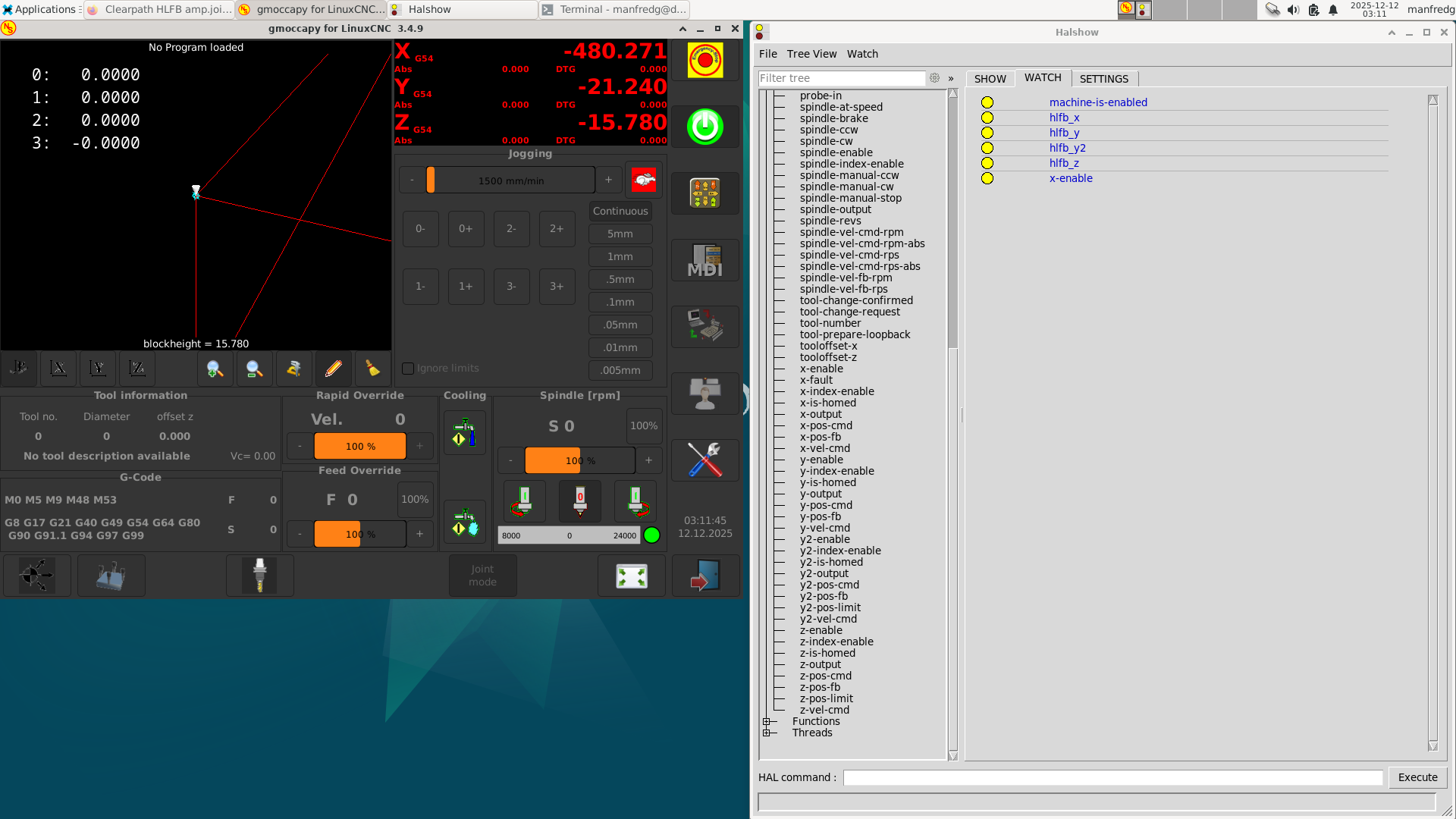 Just got back to it, have screen shots showing HLFB input pins inactive and active with machine enable ( think I did this correct) Two things only have the x axis active everything else commented out. Wasn't sure how to configure the output portion at the moment i have one output to enable the drives and the second thing was should the x axis fault with this config when i disconnect it at the moment it does not.
