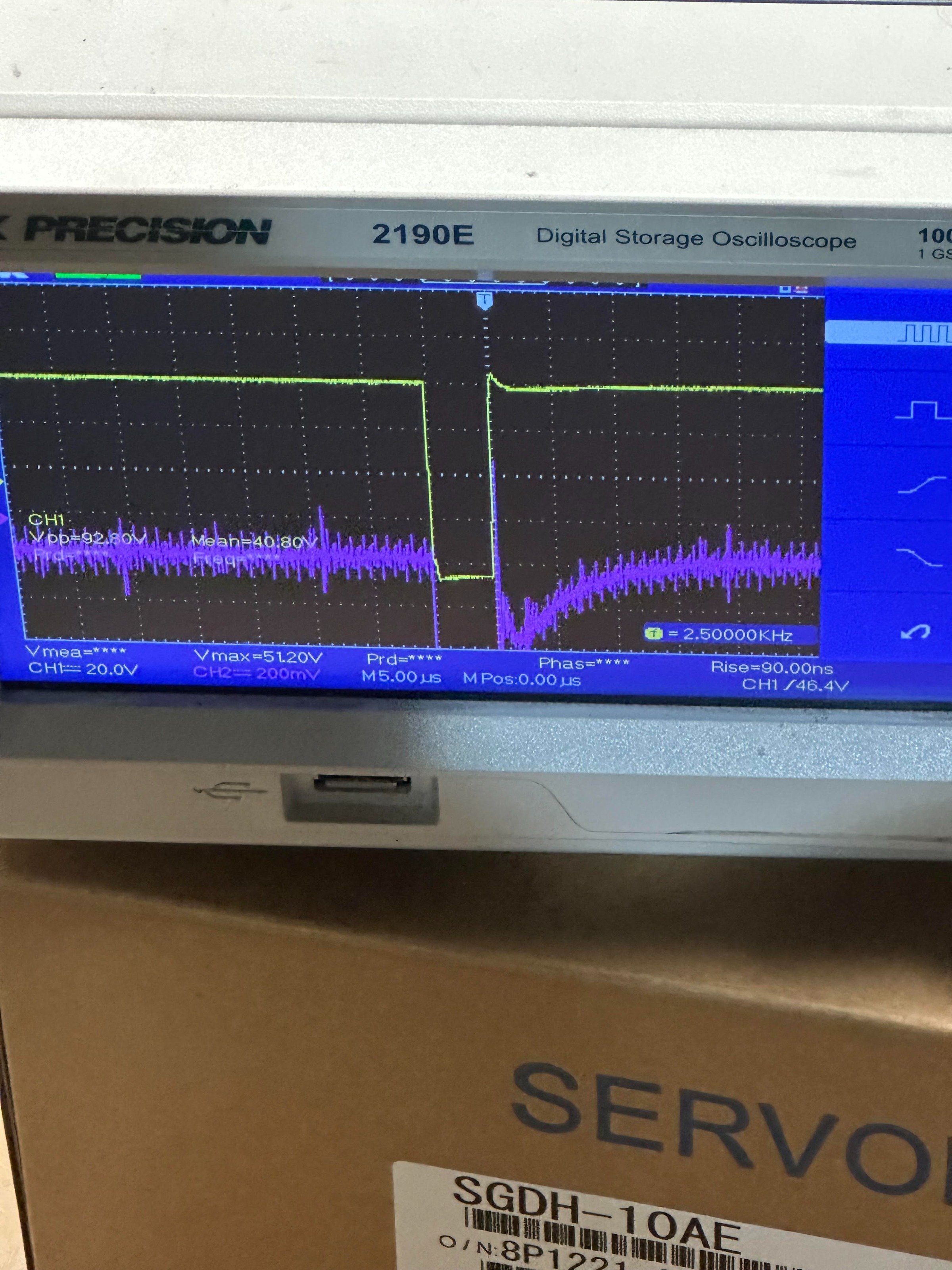 Here is a picture of our oscilloscope readings