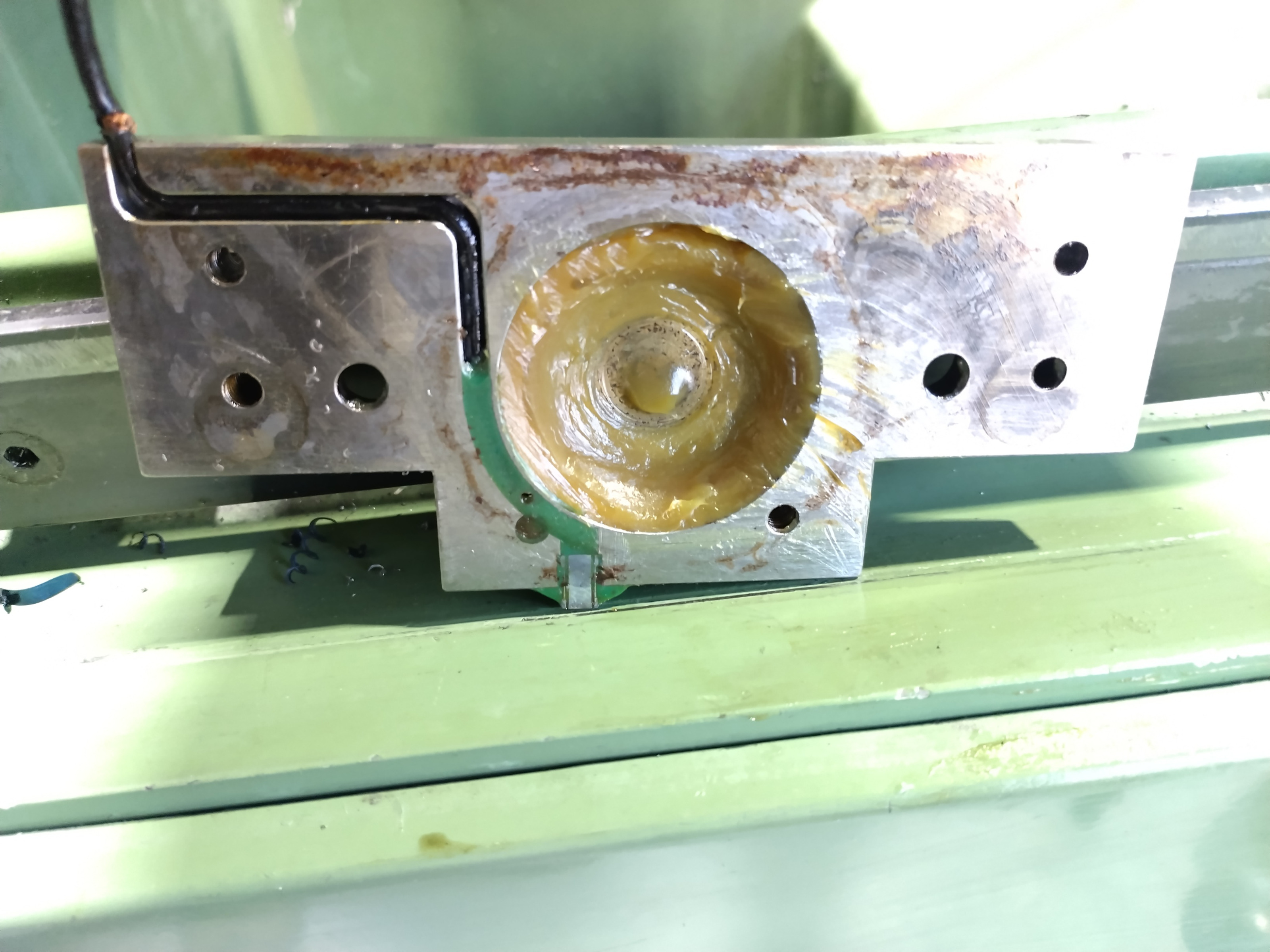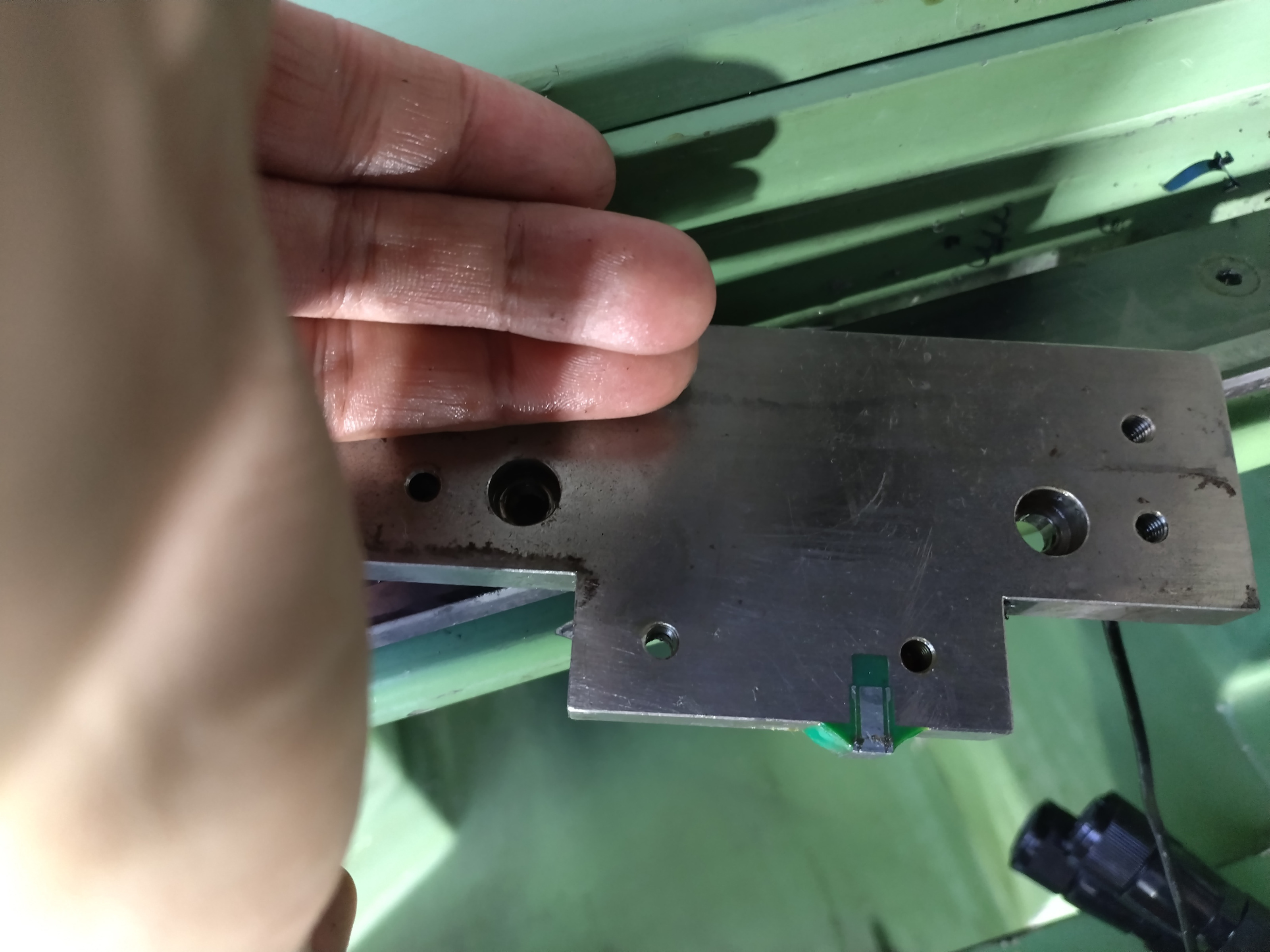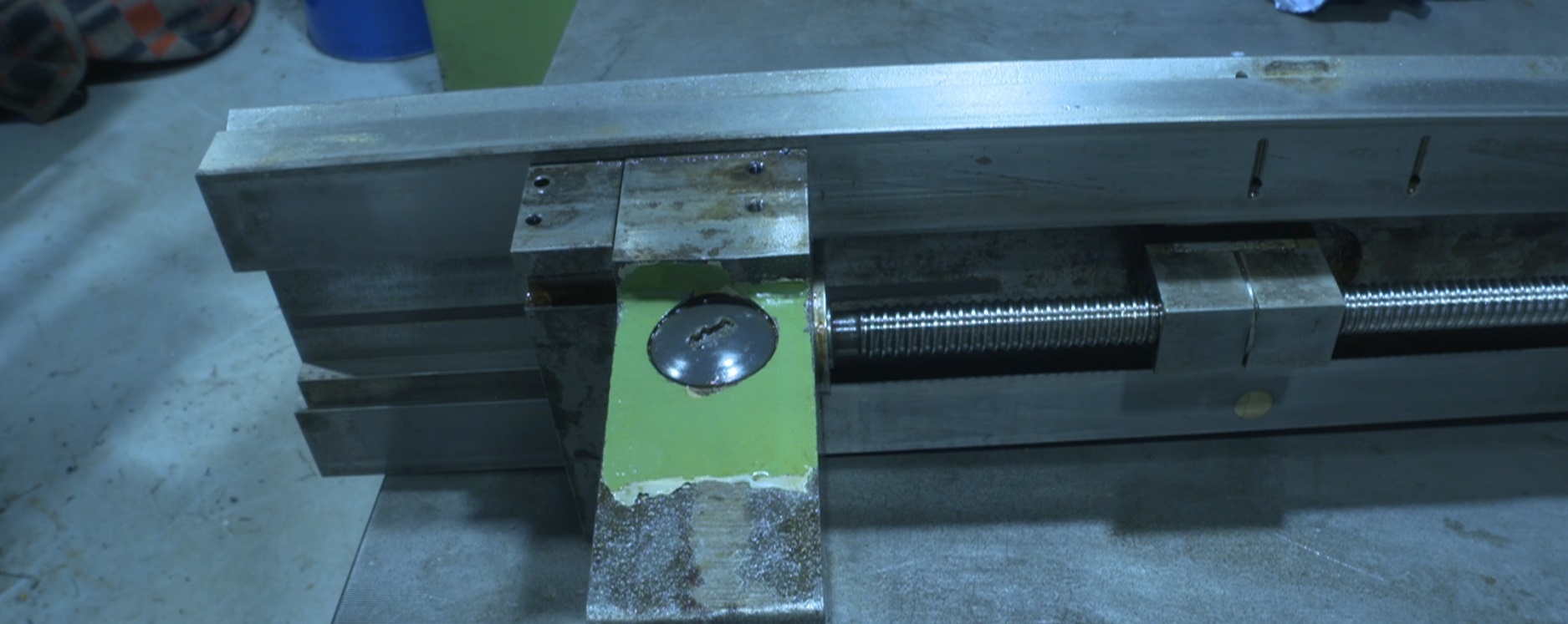 I also disassembled the X axis to see how the encoder is installed. There is a very small read head in the plate behind the thrust bearing for the ballscrew and a putted scale in the underside of the X-axis slide.