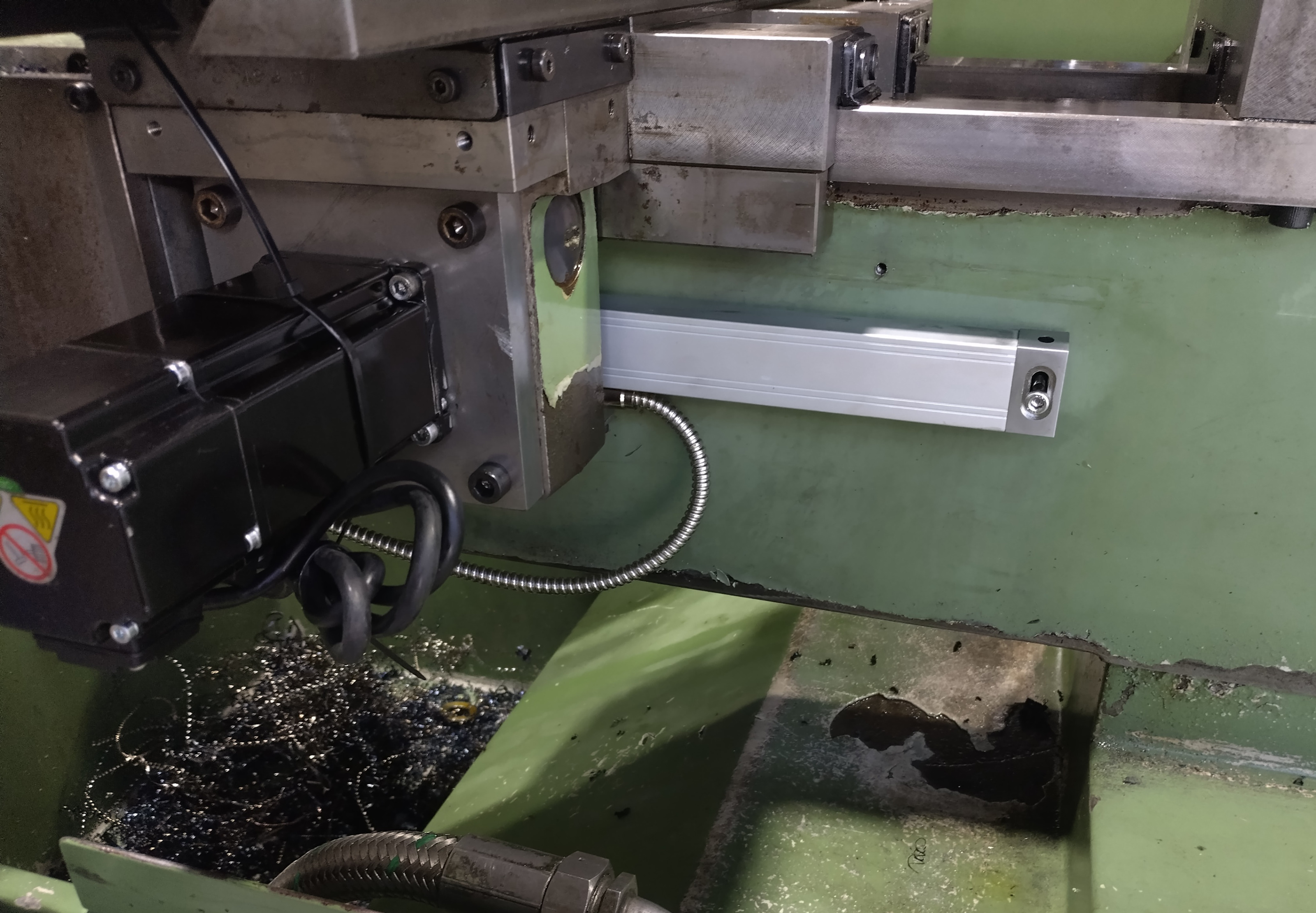 The previous owner installed a magnetic encoder on the X axis. I did not disassemble it, so all there is to see is a thin cable coming out.