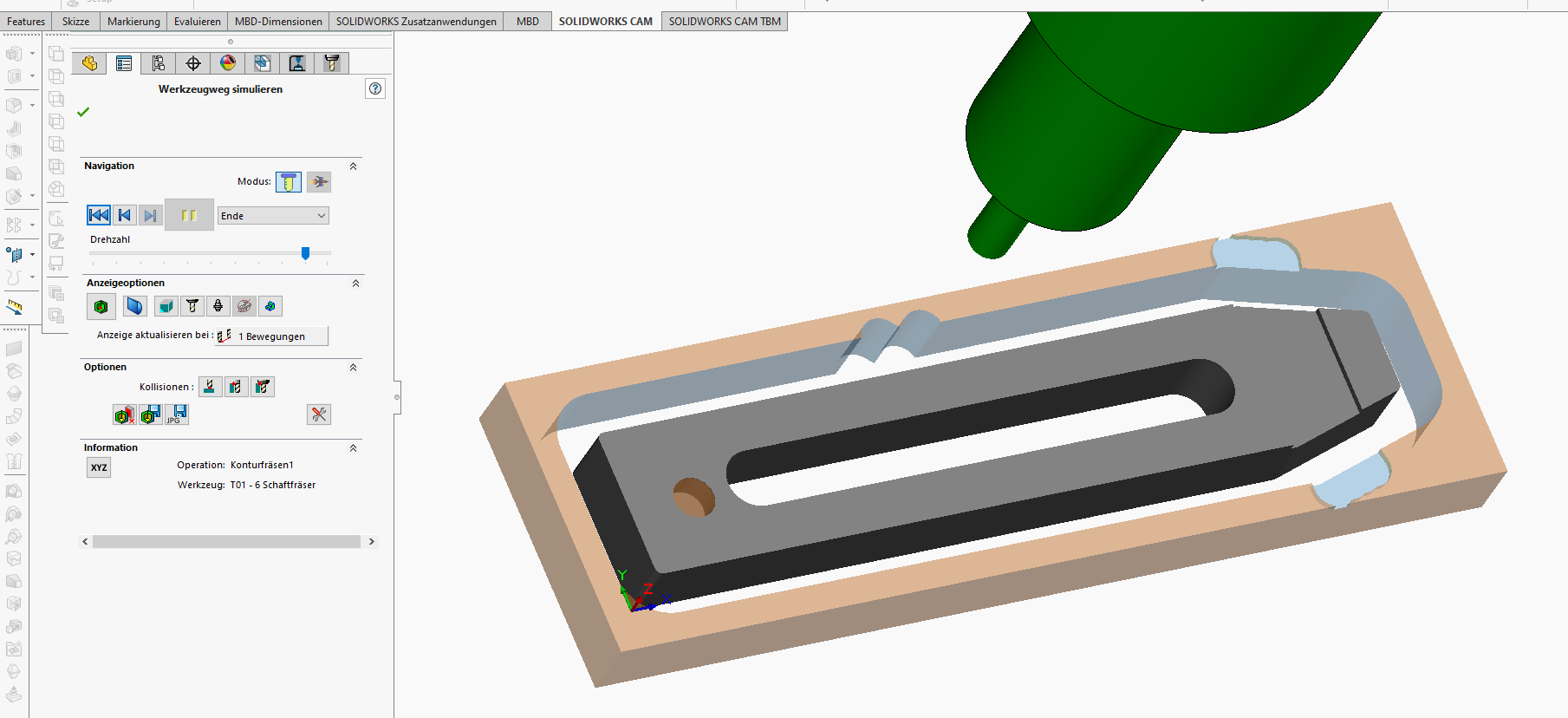 All working toolpathes are blackish and one not working toolpath is blueish. Here i want a 6.05mm hole/4mm deep. Tool should be a 6mm end mill.