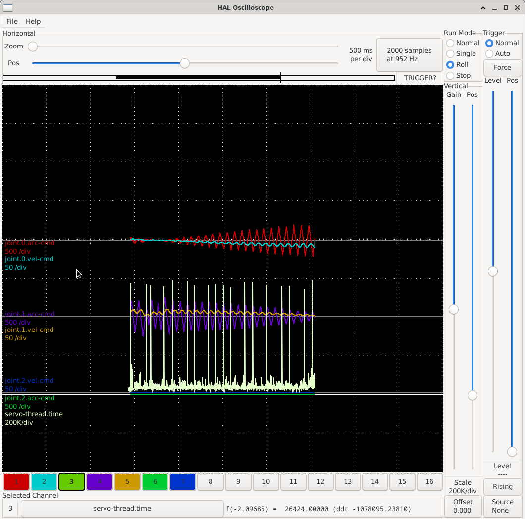 testing setup 2ms benchtop profibus master 3axis geany gui ... 3 servo axis with synchronized speed control loop at 2ms