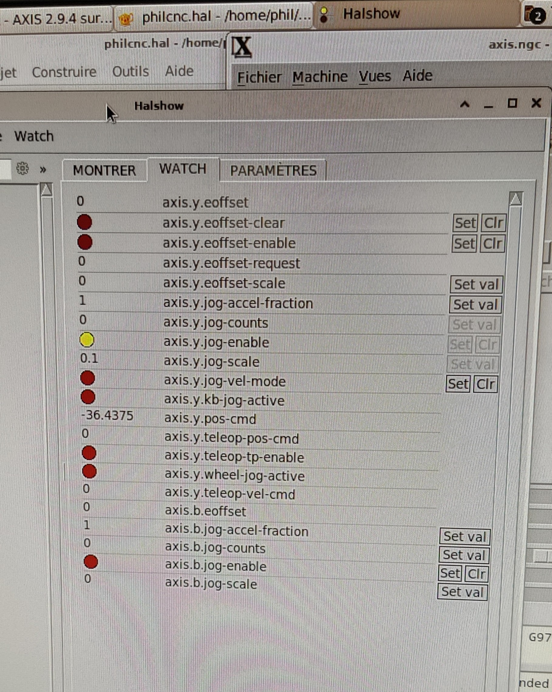 Je précise que dans Watch Hal les variables axis.y.jog-count, axis.y.jog-enable, axis.y.jog-scale réagissent bien avec les sélecteurs