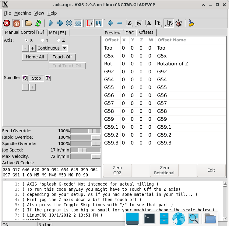Here is what it looks like. All offsets show zero, even though they are not zero.