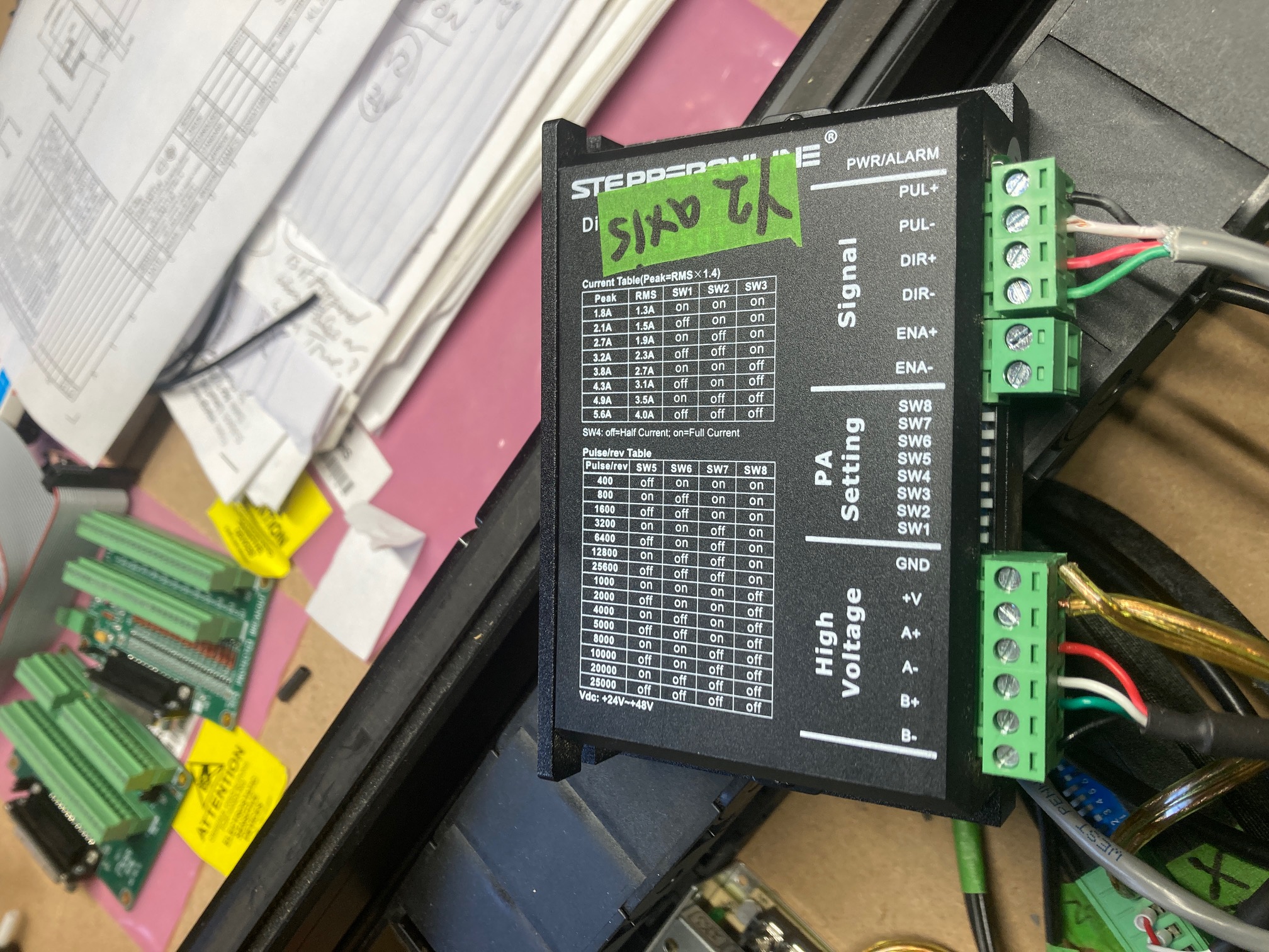 Please ignore DM566 output labeled (High Voltage) in Y2 photo because until I understand y1 and y2 wiring its unlikely to be correct , (it currently homes correctly, but still y2 jogs in the opposite direction).