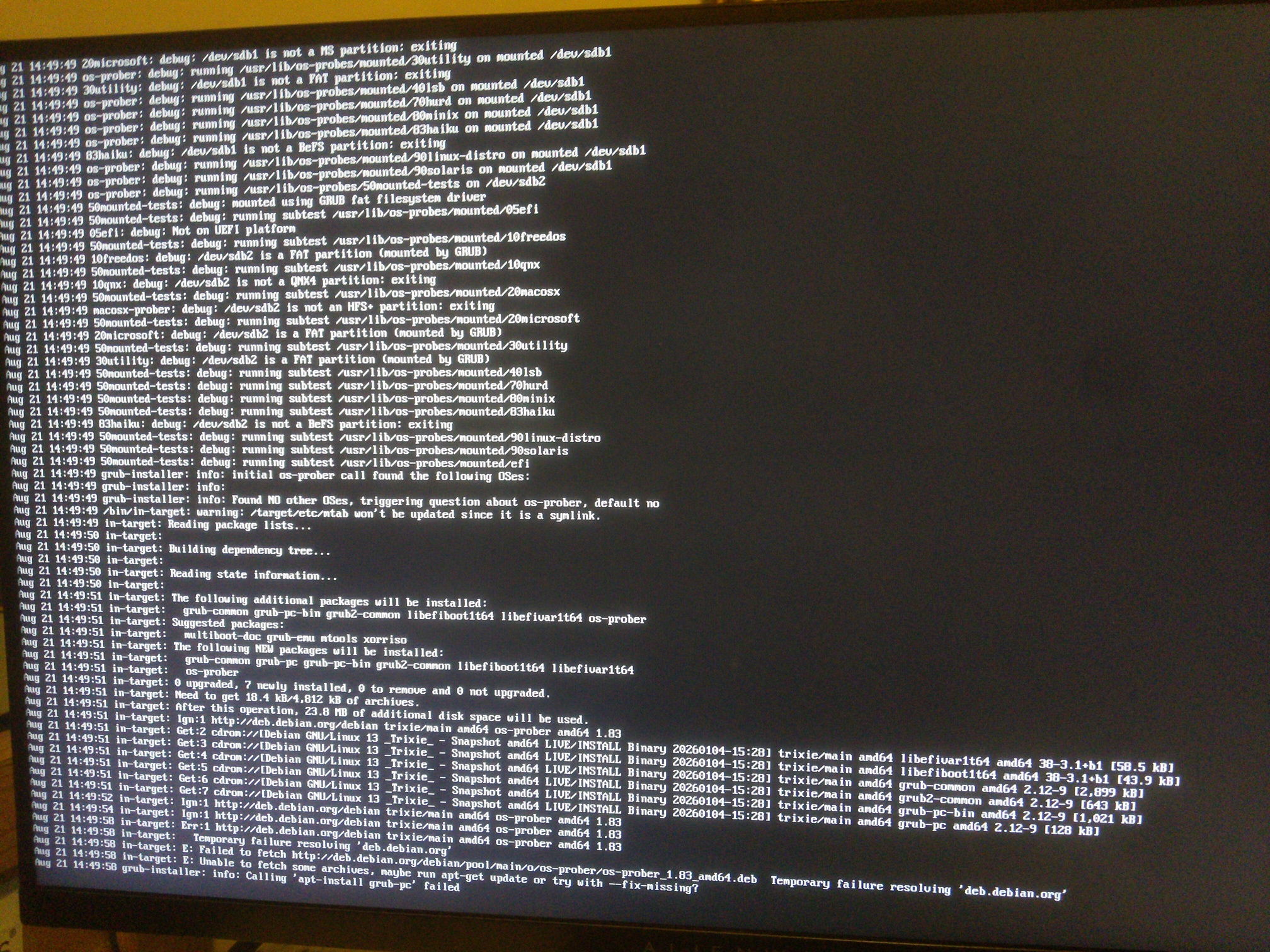 The really strange part is the previous iso of LinuxCNC (2.9.7) is also based on debian13 and that installed without any grub issues and no internet access was available