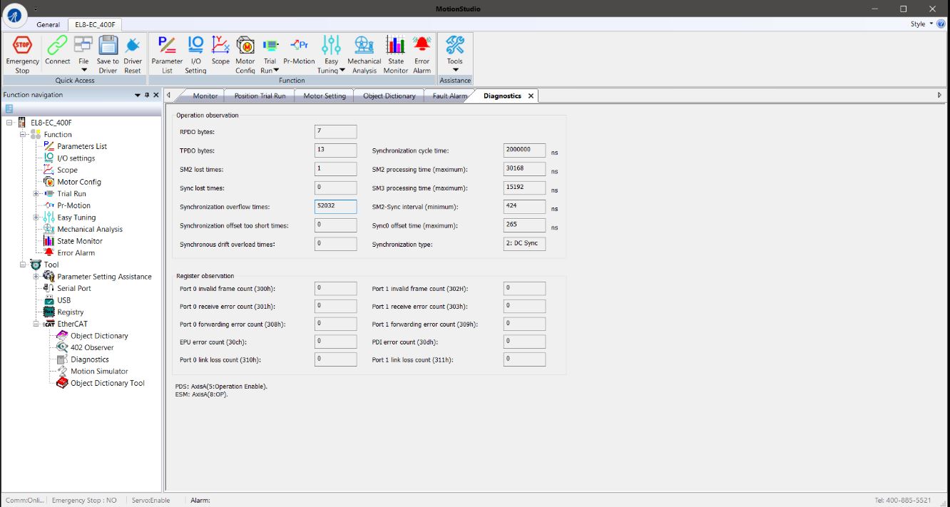 Synchronization overflow times” = the number of times the drive saw Sync0 + PDOs outside the valid window.