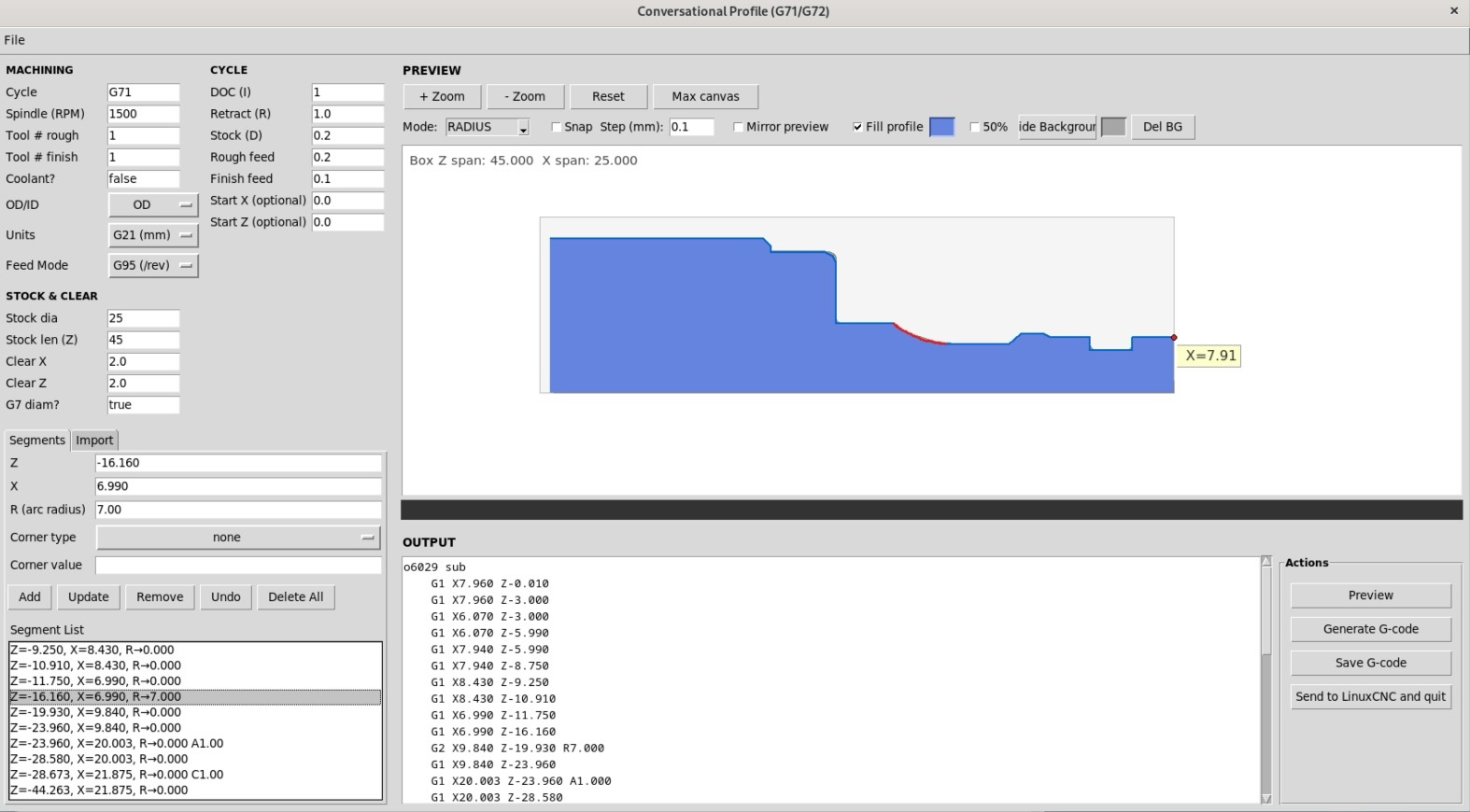 Simple G7x Profile editor for Linuxcnc/Axis was created by opw