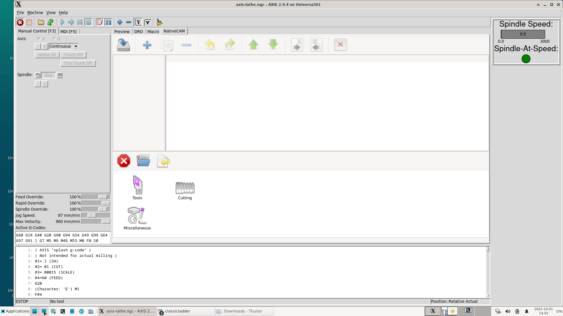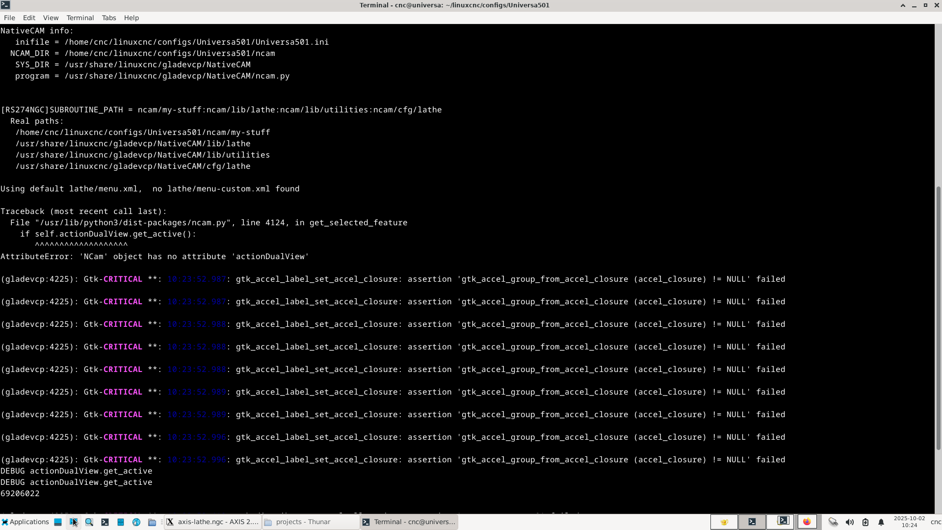 I'm trying to reinstall LinuxCNC on Debian 12, but I can't get NativeCam to work. I'm missing the menu and actions in the left pane. Does anyone have any ideas?