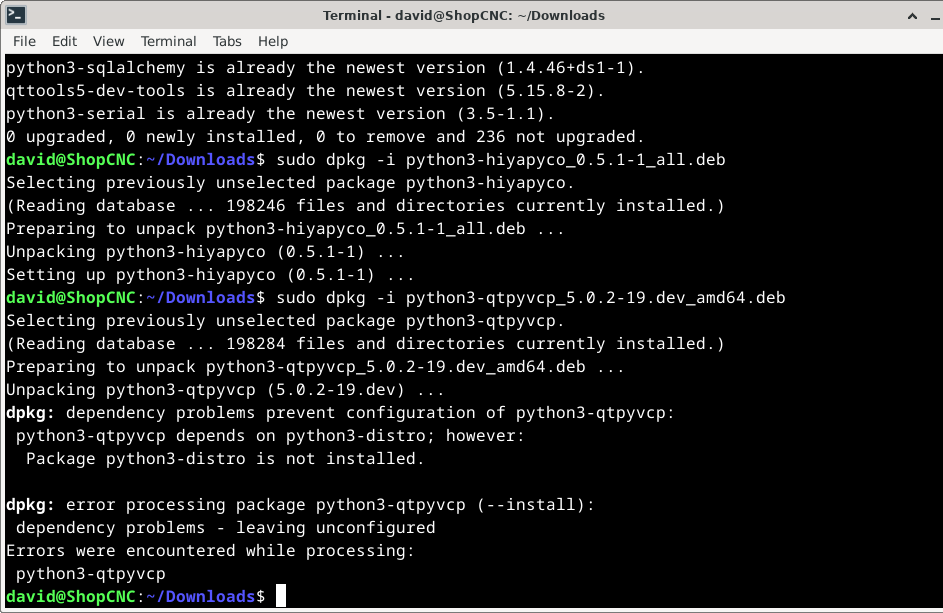 I get an error when I run the third command 'sudo dpkg -i python3-qtpyvcp_5.0.2-19.dev_amd64.deb'
