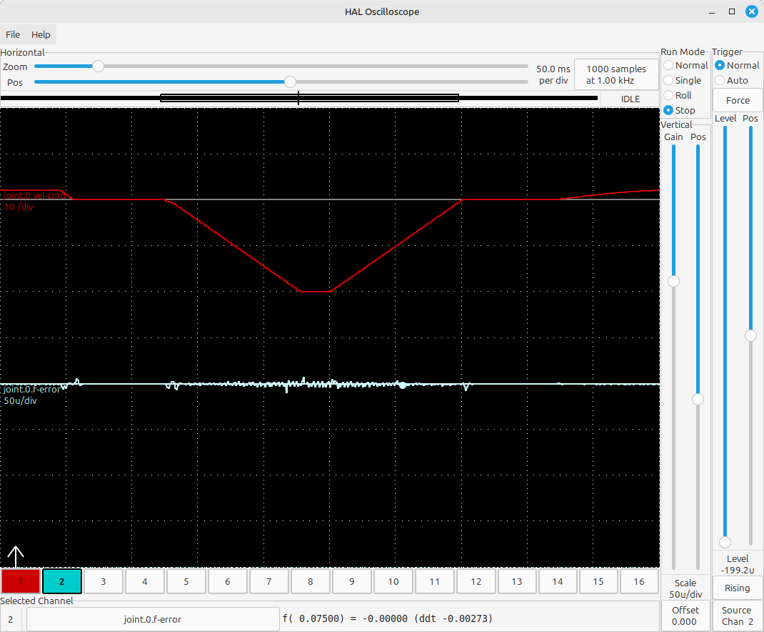 with the commanded position. At a 2 ms servo thread period and 125 mm/sec