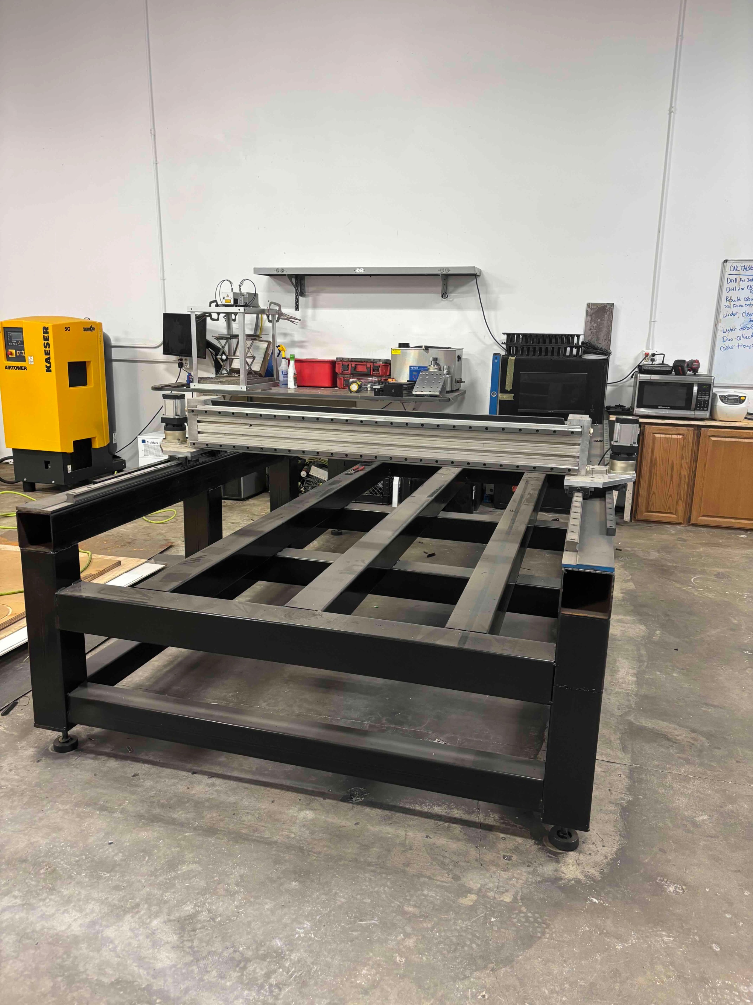 You're welcome, I'm glad you got it worked out. On the topic of separate machines, the logic is there and holds water; it's almost like multiprocess welders, unless you drop some serious money, you're compromising. And I, for one reason or another in the past, needed both couldn't afford both, or didnt have the space, I know I'm basically handicapping the machine, whichever gui is loaded but not ot the point, parts are out spec, or customers bringing stuff back. The plan is to build another machine for a 3 to 5k fiber laser, ditch the plasma altogether, and mount an ATC spindle and vacuum holding to this current one. I've been really good this year, hopefully a smoking deal comes through on BidSpotter for a laser source. This is the 5th iteration of a CNC gantry-style machine I've built. I went HAM on it just because I'm tired of being tired of not being satisfied with it. The .5" flat bar on top has a reference shoulder machined in and a skimmed on both sides im gonna use jack screws every 12" or so in pairs to get this thing as coplanar, square and level as pyhics will allow, me to and then use a metalized epoxy to bed the bar to the frame and finaly a few stitch welds to lock it in. ce la vie i gues. Your set up is pretty gangster