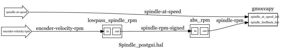 - Spindle_postgui.hal - Scaling for use with gmoccapy.Using hm2_modbus provides much faster communications and better gear detection during accel/decel than the user mode driver I previously used.