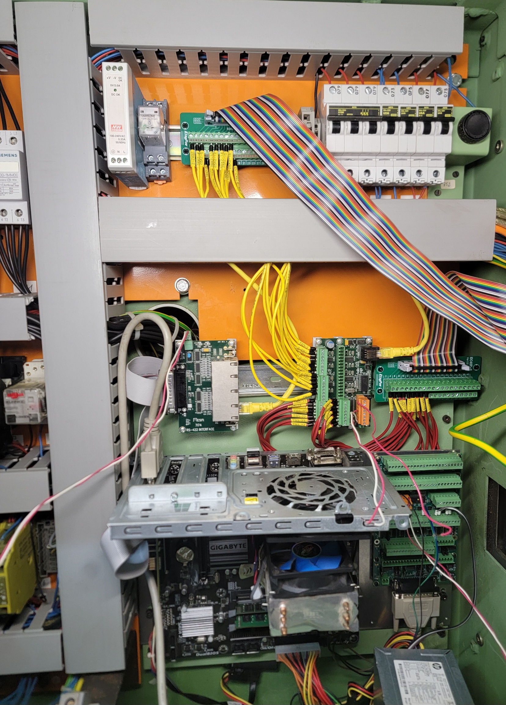 I have been slowly chipping away at this in my free time. Finally got to the point of removing the old computer. I made a mess of the wiring trying to test stuff but I ripped all that out and started over so here is where I am at. Waiting on another power supply for 12v as one of my cards needs that rather than 24v the machine provides. Only a few more wires to add then I believe I will be able to start carefully jogging the machine around.