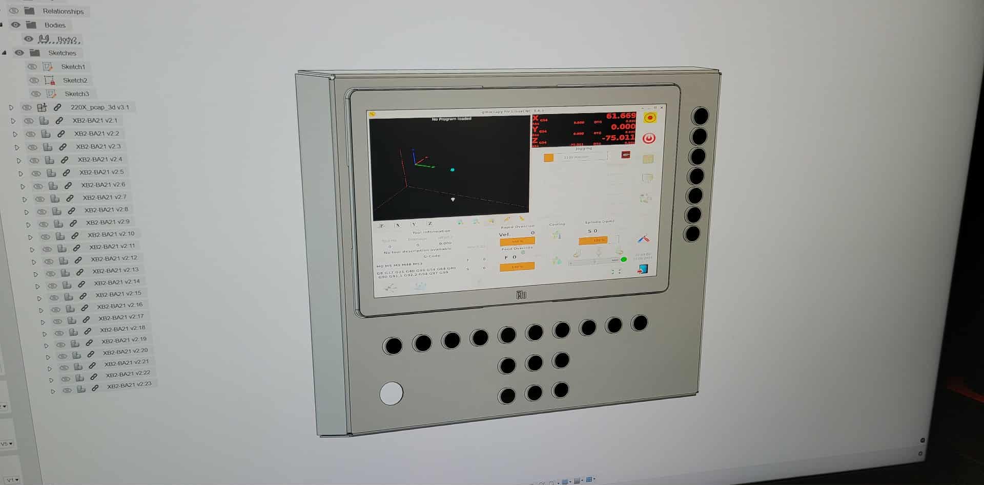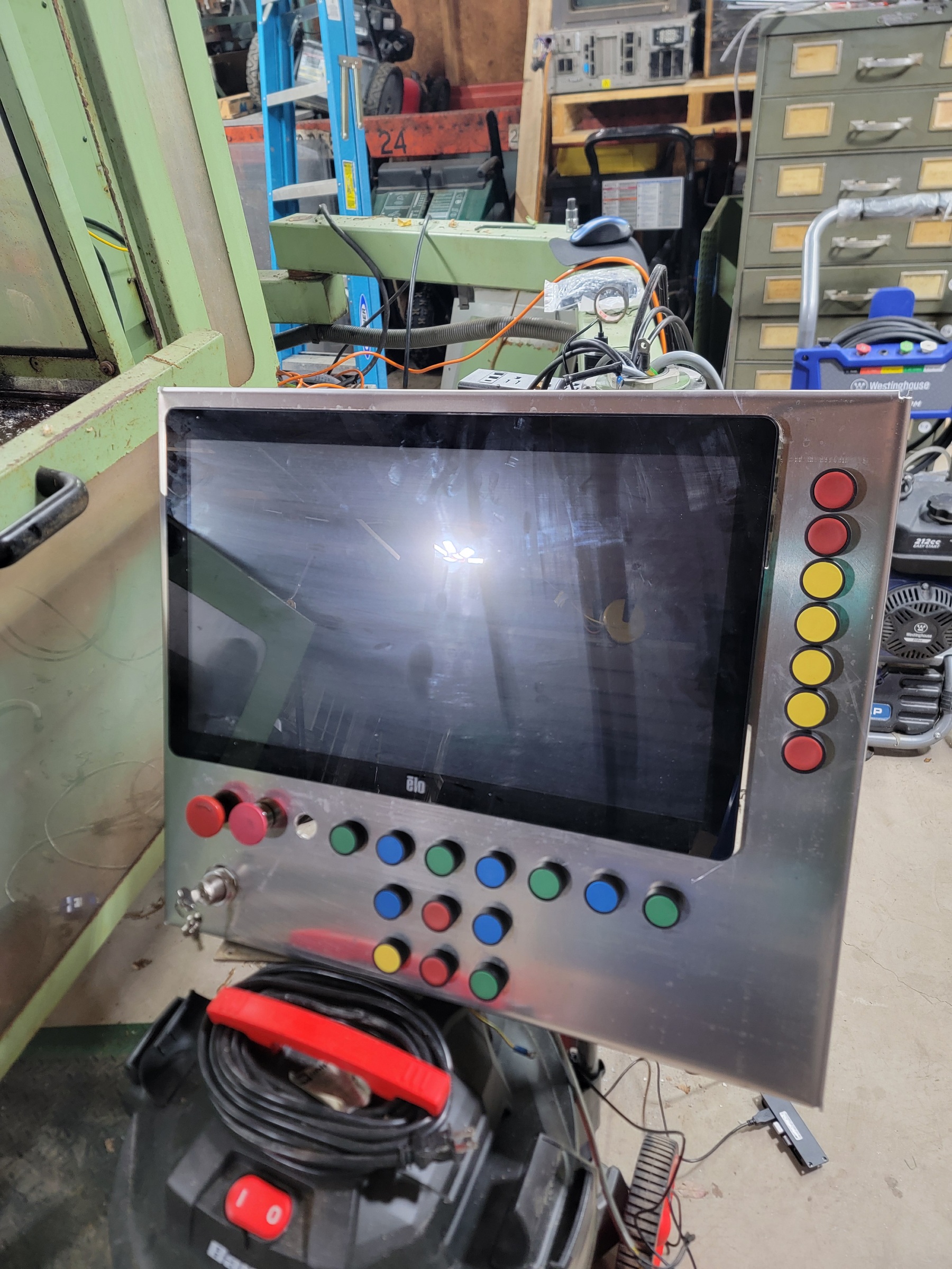 I find little bits of time in the morning before work and whenever else I can squeeze out to the garage. I have gotten the machine to the point where it all homes properly granted very very slowly. It then moves to home position. Yesterday I designed a basic control panel for the monitor which I also got the touchscreen this week. I had enough time at to different points in the day to cut and then later bend up and partially assemble the control. Need a lot more time to wire it all up and change the program to use the 7i73 for the control interface. In the future I plan on adding 2 override encoders as well as an mpg either on the panel or on a pendant as well as 2 or 3 USB ports