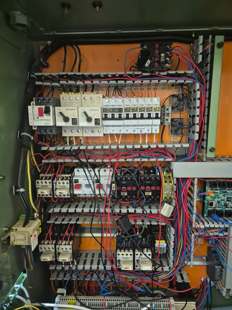 - Reuse of the original 400 V → 110 V transformer, the cabinet itself (with heat exchanger), the hydraulics pump and the lubrication pump