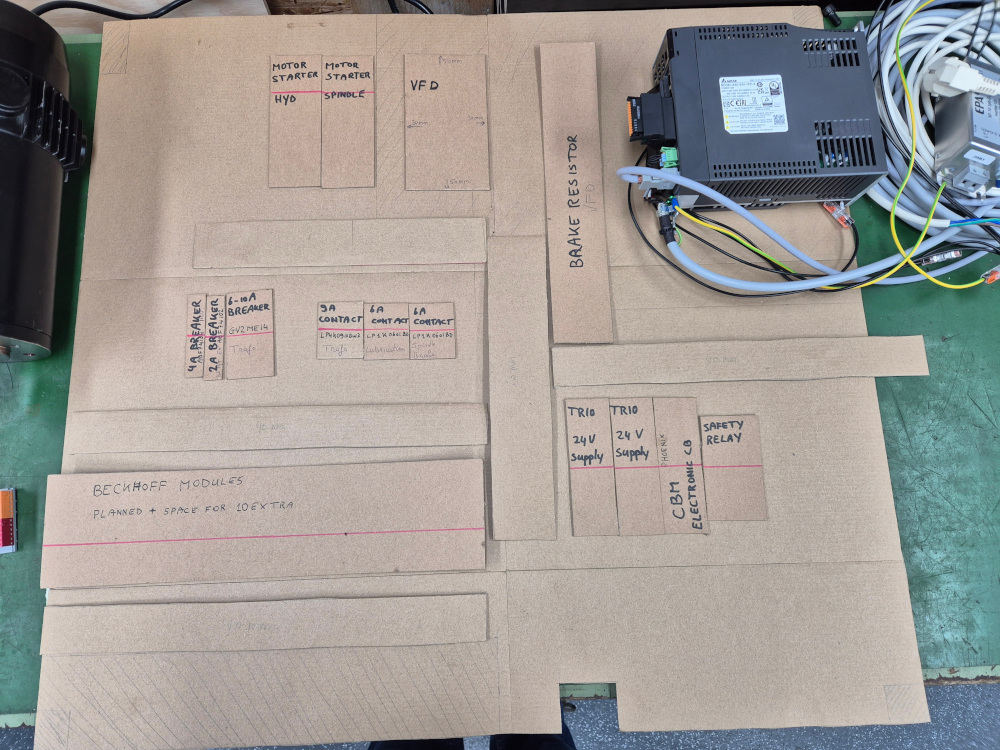 I started working on the layout of the new control cabinet using plain old cardboard, which actually works surprisingly well.