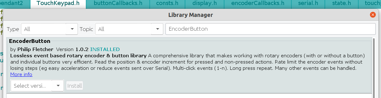 The first part of releasing the source code is the EncoderButton library that underpins the MPG and spindle/feed controlsand button callbacks - I've cleaned it up, documented and published it here on github .