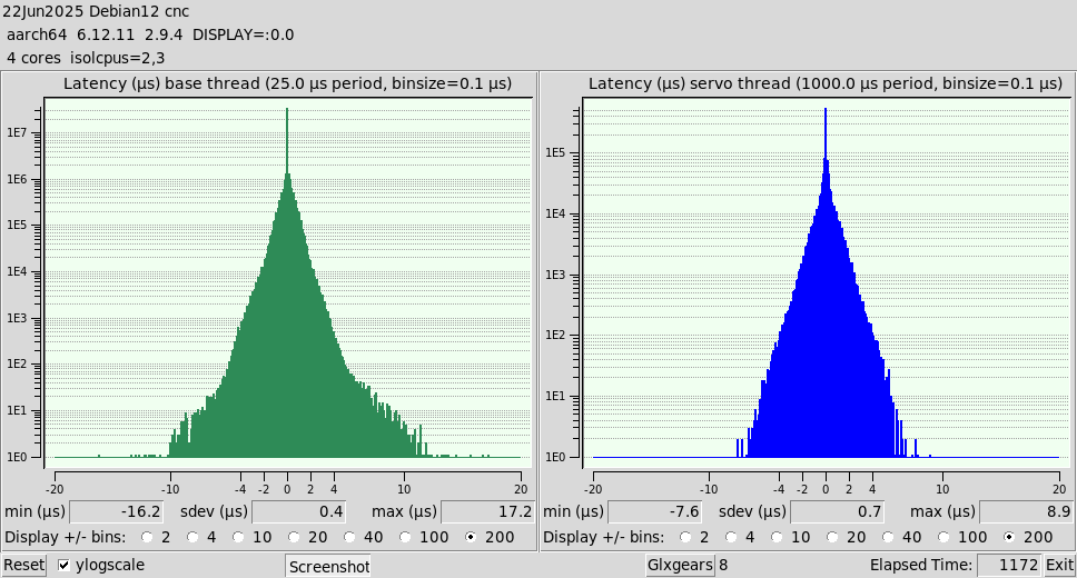 With the RPI4 being a viable contender albeit marginal for linuxcnc I thought I'd share some results i got from a stock RPI5 with a SD and with the addition of a nvme hat. I think they have knocked it out of the park with this one.The first one is with a nvme ssd hat added and the second one is with the standard SD card.