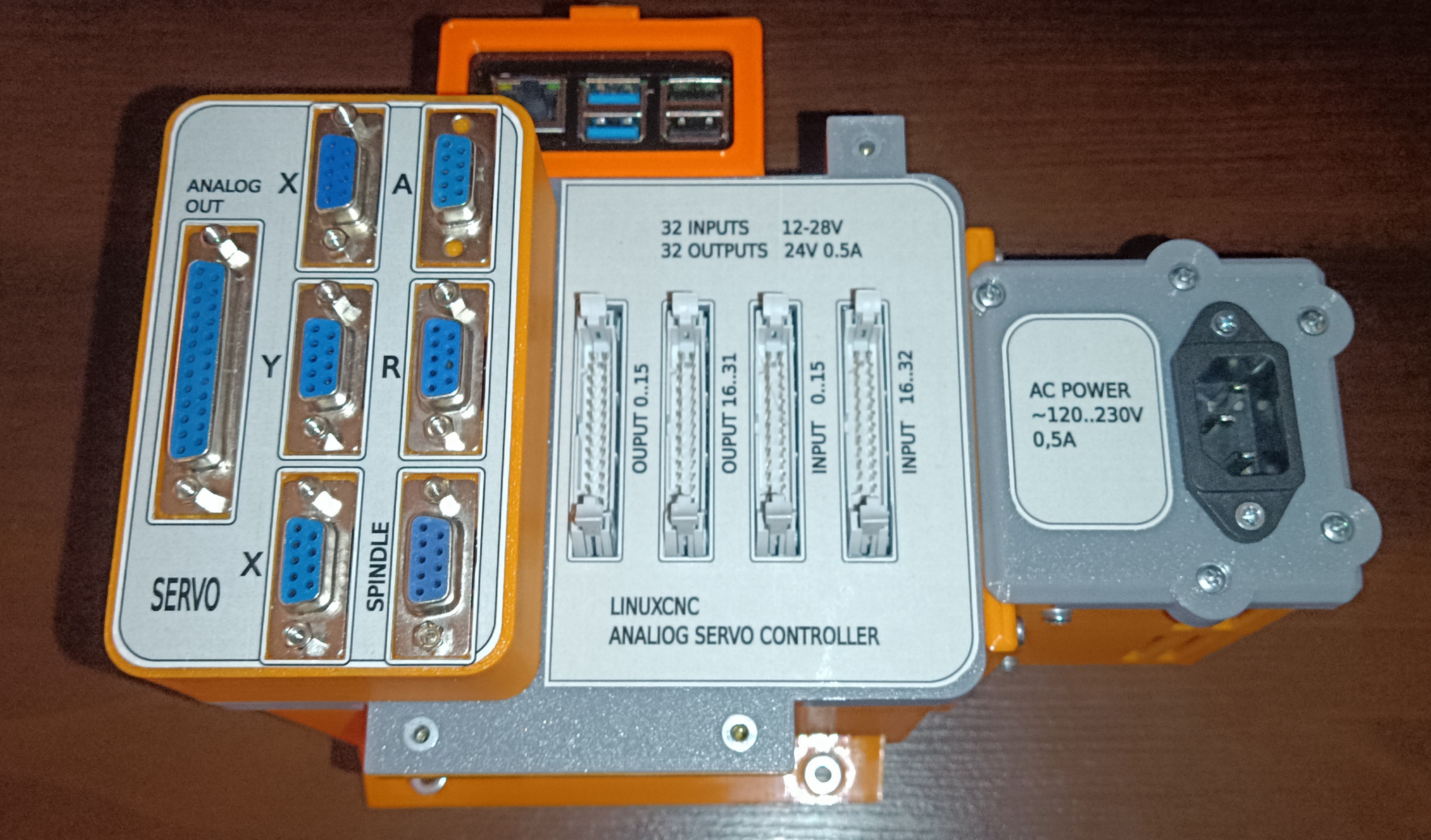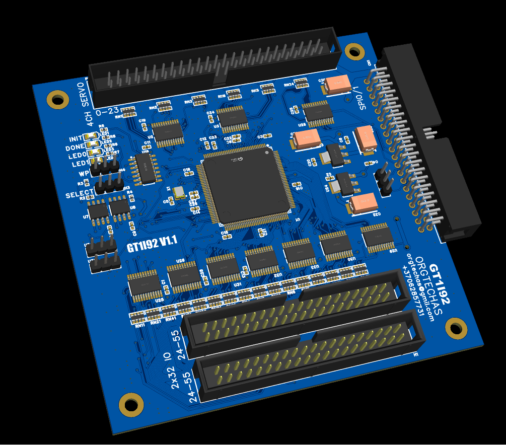-4 analog servo -10V.. 10V outputs, 4 encoders input, one board