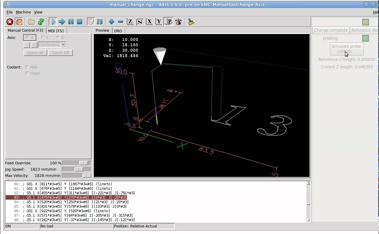 For manual tool change and remap, answer is "Yes" ofcourse, and if i get g-code not prepared by me, it is very hard to know what size of material i should use for job since AXIS show wrong job measurement..