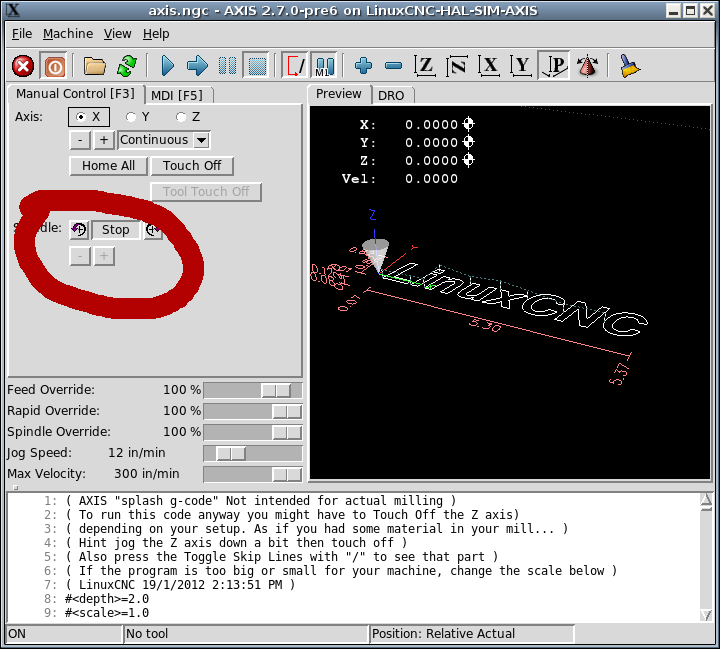 Currently my is plight concerns the Spindle speed control on the Axis GUI. The R2E3 uses a pneumatic controlled variable speed pulley setup; the original machine I converted uses the original switch to control the solenoids.