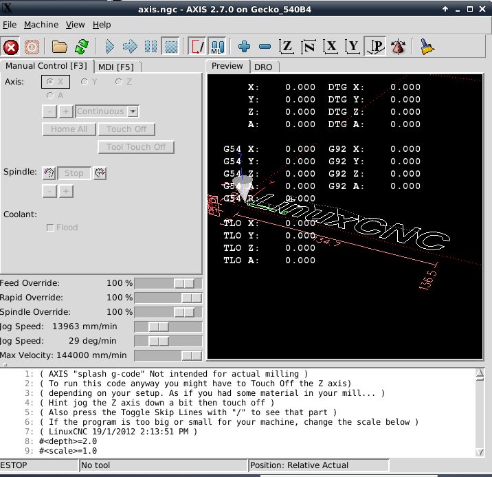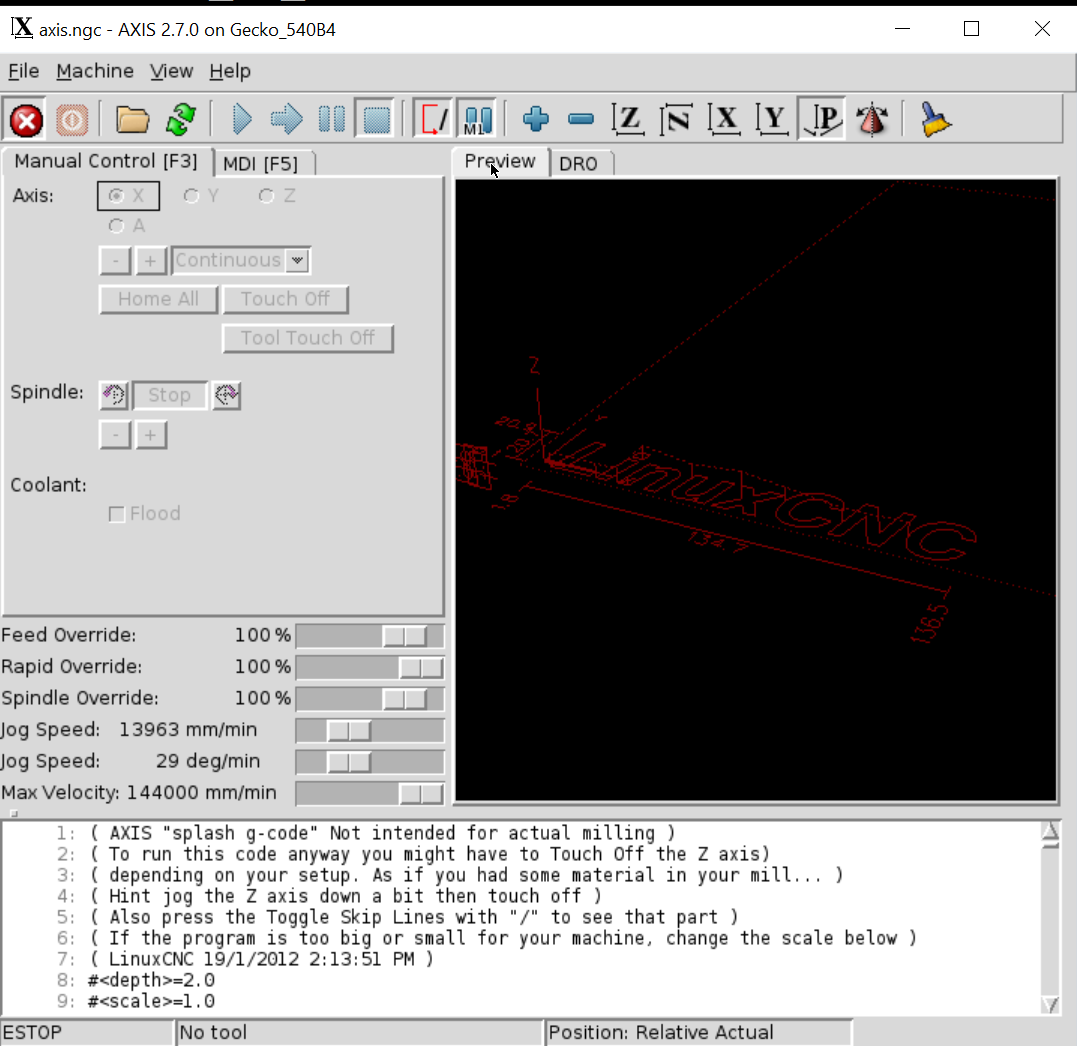 I need to use my LinuxCNC machine as headless, and have been using X11 over SSH , and for the longest time I think I messed up the configuration to loose the displayed coordinates in the preview tab.