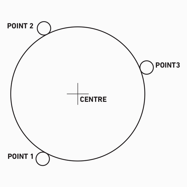 When I need to find the centre of a circular feature I've been touching a dowel off at three points around a circumference (fag paper or multimeter method) and feeding three sets of X,Y coordinates into a spreadsheet which then works out the centre for me, like so: