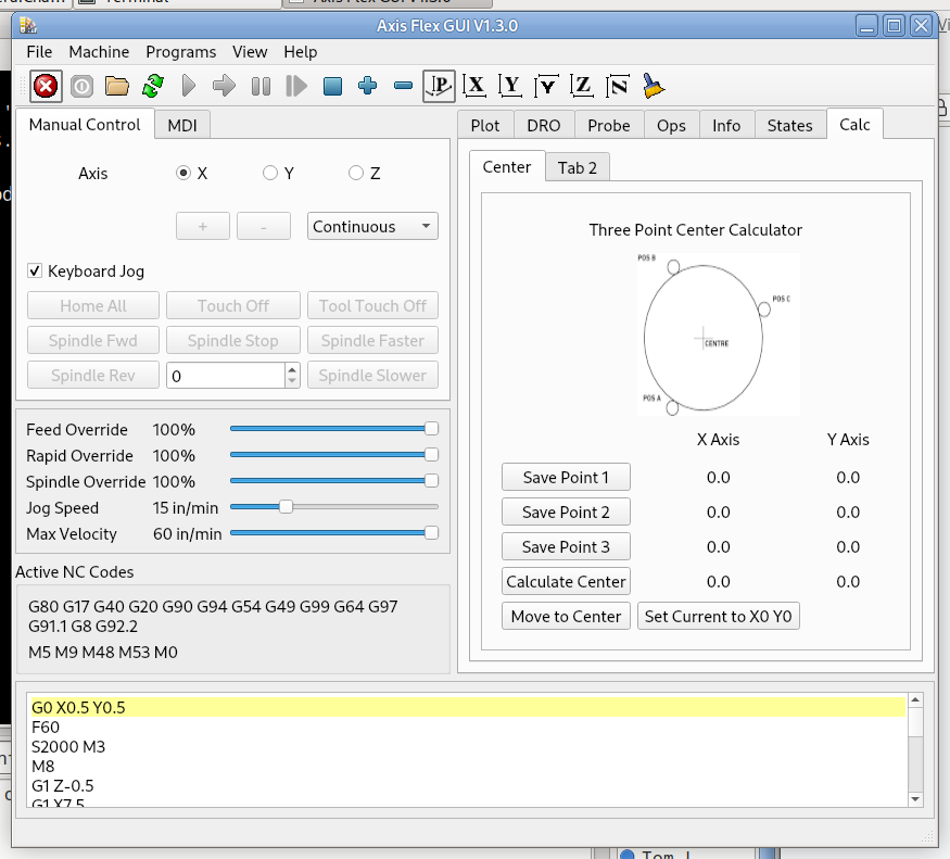(The latter two options would involve interacting with LinuxCNC using the Python Interface (probably using Pythin to create G-code command strings)