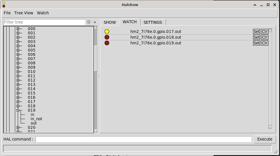In Halshow, I would say that I have set the correct pins via Set. However, no output is switched. I can switch the yellow indicator in Halshow on and off.