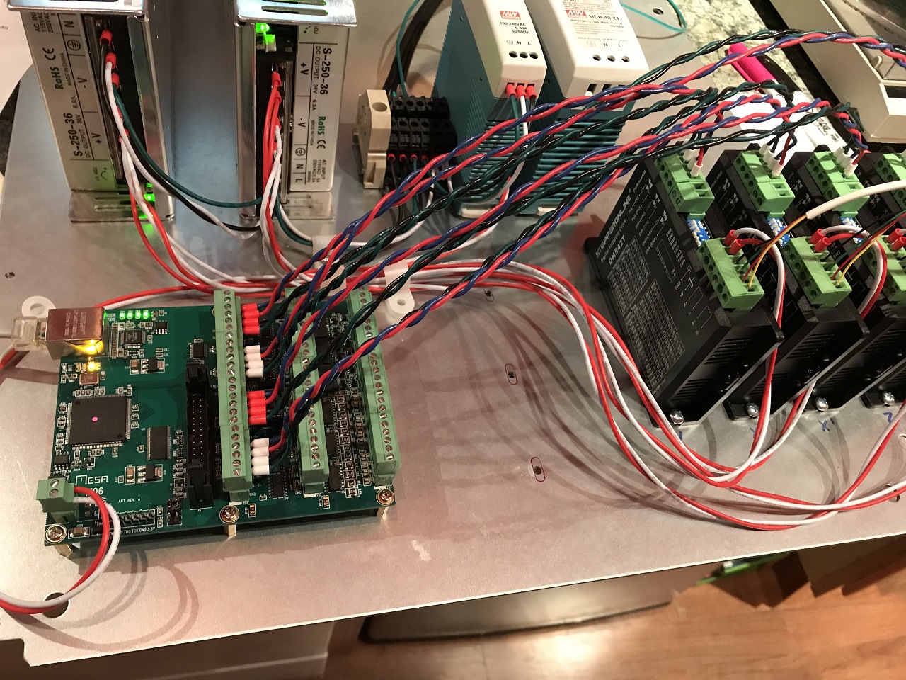 LinuxCNC is talking with the card, axis positions in joint are changing, the drives are powered, and the stepper rotors are locked/holding.
