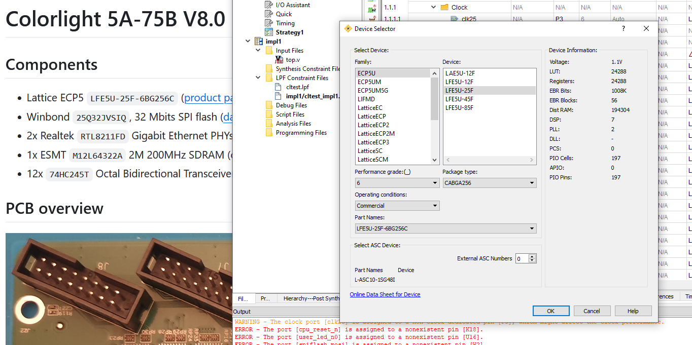 Anyone have a Lattice Diamond project for the Colorlight v8 board?