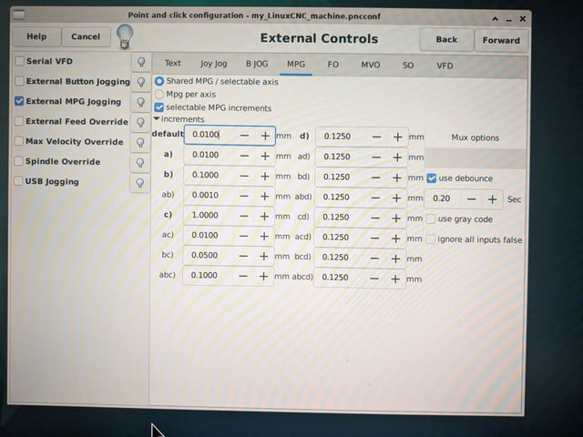 support 1X mode, so if you want 1 increment of motion per MPG click you need to use the MPG encoders