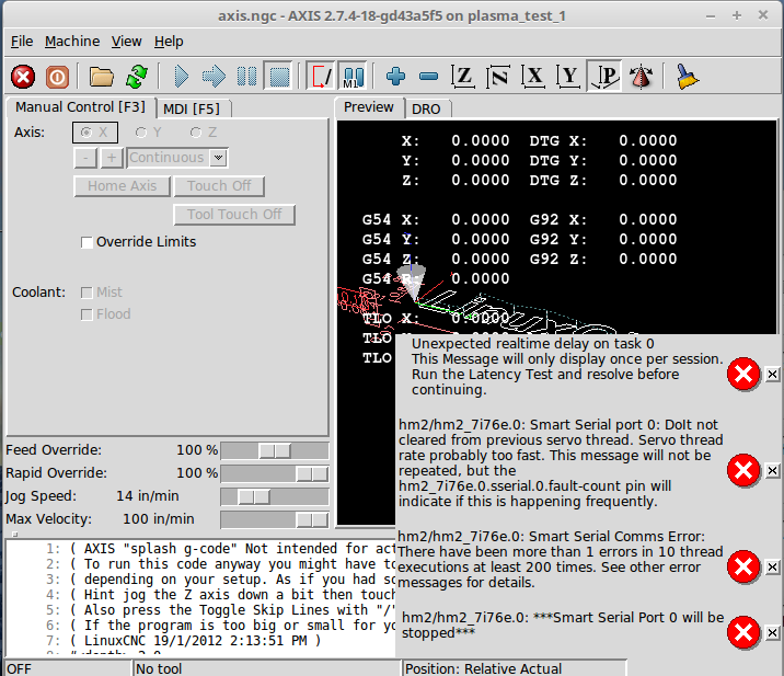 Ok, I can't leave things alone so I try:Well I don't know what to make of this. Does this mean everything is alive and well? Time to move onto Pncconf and try to make trial configuration files.
