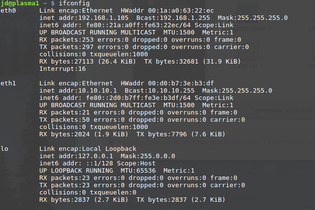 1. Get the 7i76E card communicating with control PC on a new private network in the the 10.10.10.X space using the Intel Pro 100 NIC. The IP address for the NIC is set at 10.10.10.1 and I hope to get the card configured with an address of 10.10.10.10. I think I will be able to figure this out between the manual and forum posts.