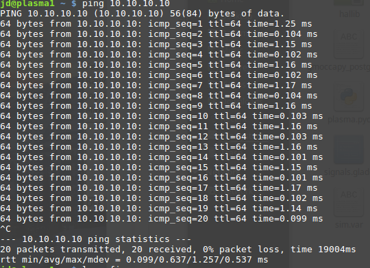 jd@plasma1 ~/Downloads $ ping 10.10.10.10 -c 4