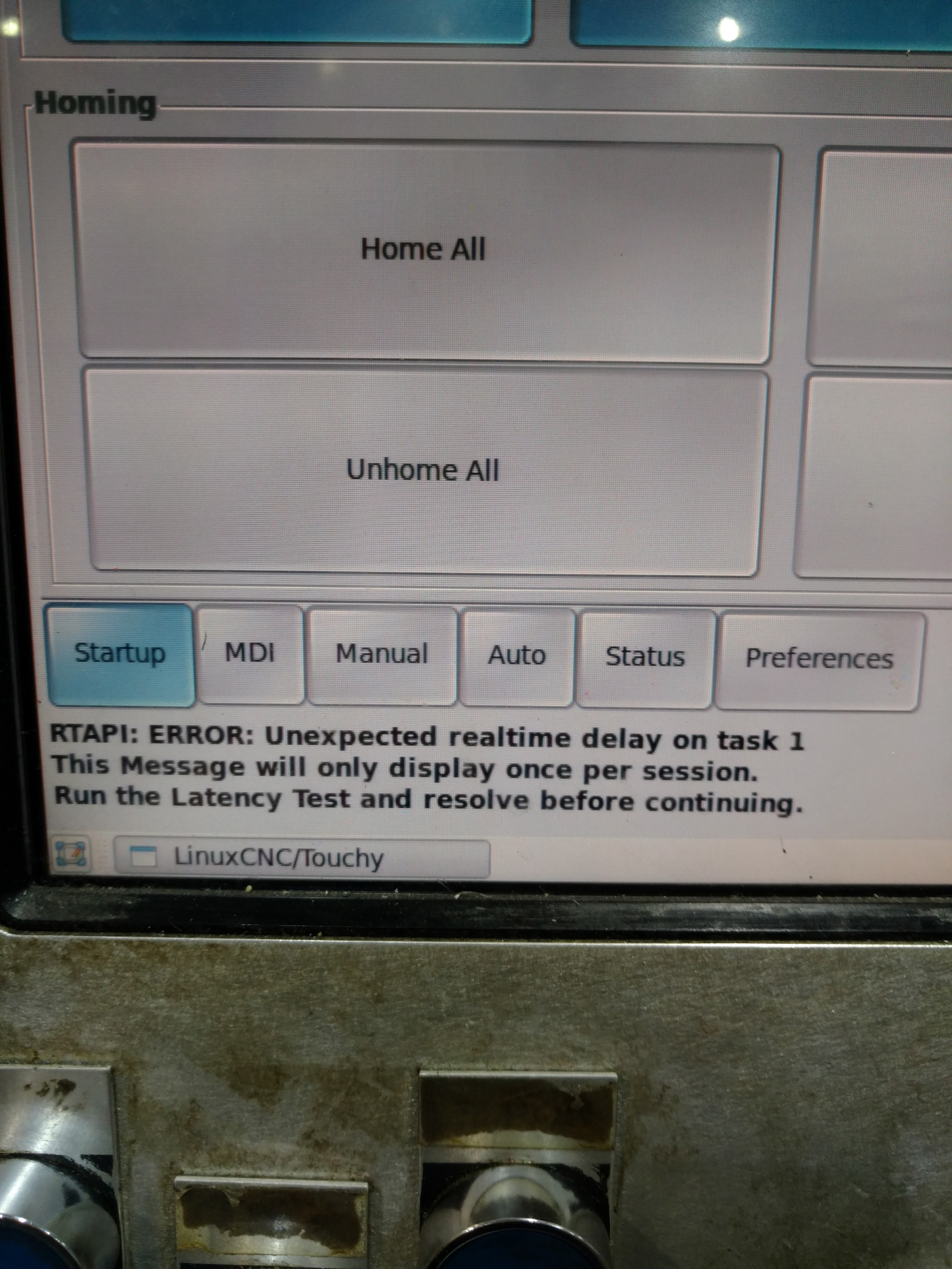 This morning the machine operator said the hadwheel started acting erratic. I told him to close LinucCNC and reopen it. When he did this comes up.