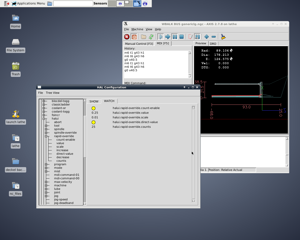 Im having trouble on my Deckel FP4NC and recently completed lathe with the rapid overrides. The rapid override is selected by BCD switch with 4 positions 0,25, 50 and 100%. In HAL, this is handled with the standard PNCconf arrengement with a MUX component.
