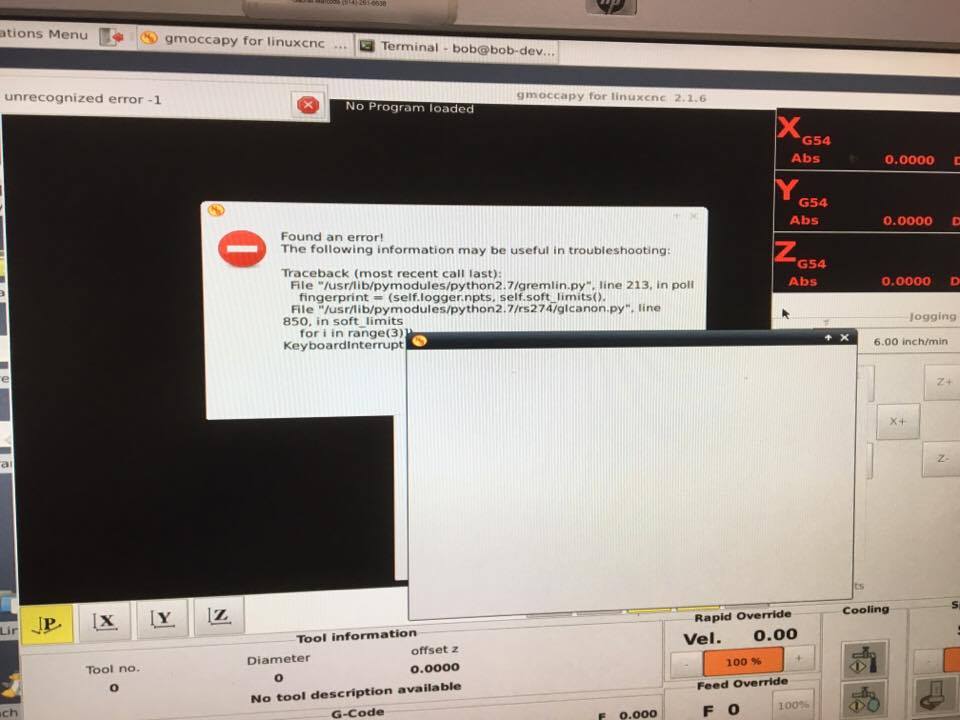 In Gmoccapy it throws errors everytime, and you cannot close the errors, plus I cannot find the pid it is running to kill it, so I have to restart.