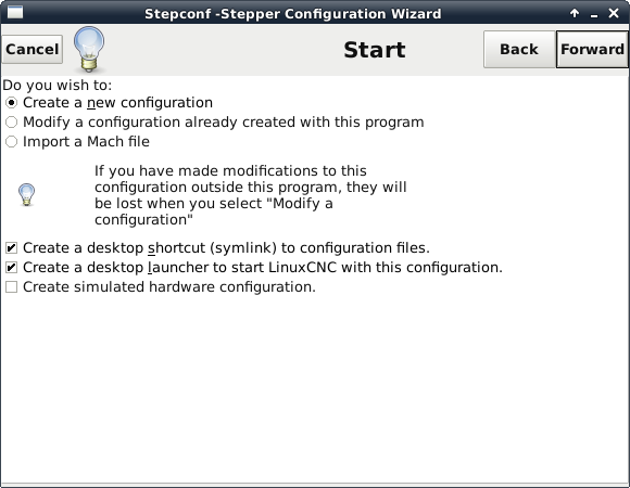 Also please remove the check in front of "create a simullated hardware......." in the second page of stepconf.