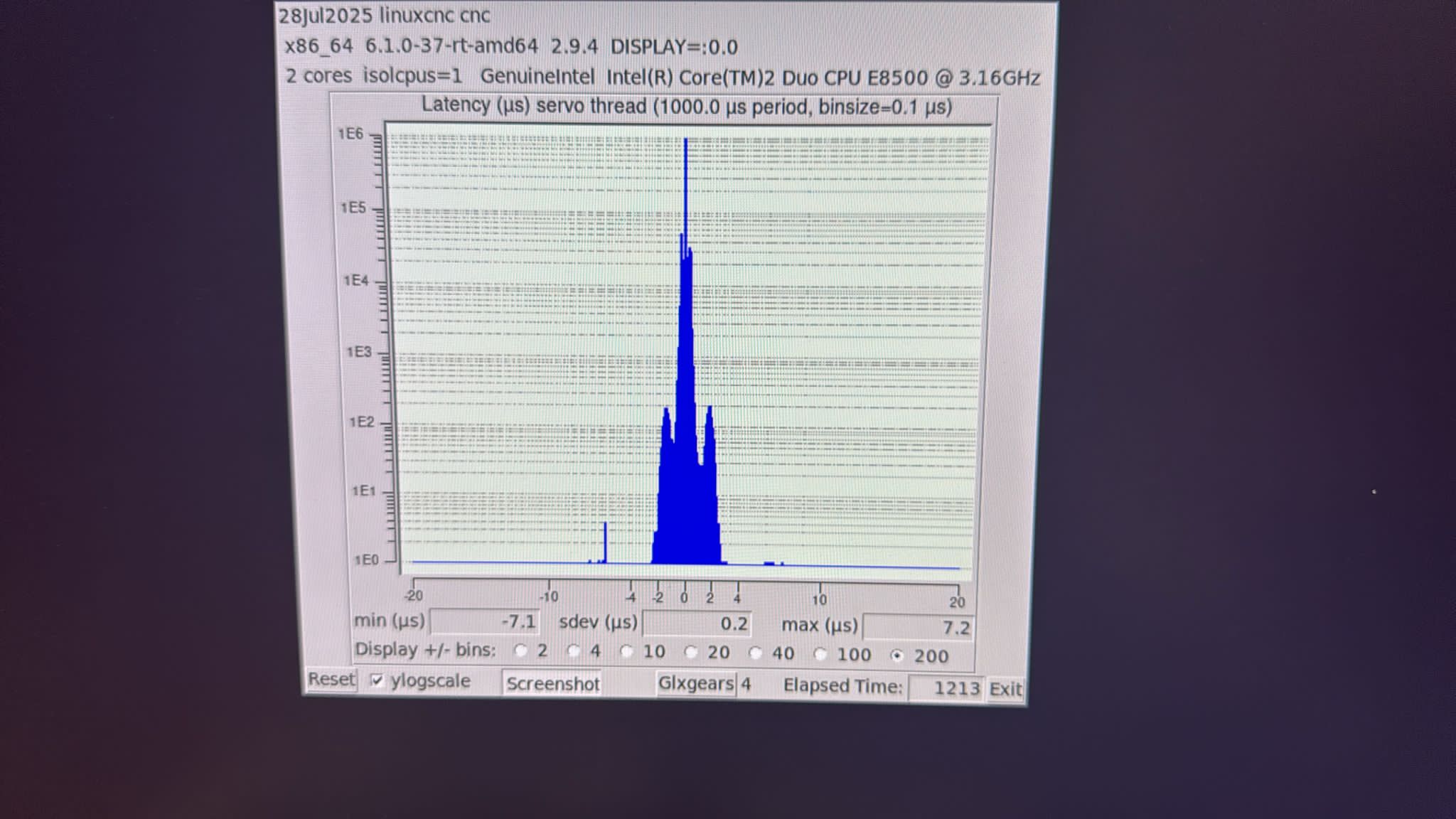 I think you might have some misunderstanding of where our S-Curve lives within the LinuxCNC architecture, we only changed the TP which stands for the Trajectory Planner. The Trajectory Planner is not calculating anything when you run latency-histogram, whatever spikes you see in latency-histogram have no connection with the Trajectory Planner, does that clear things up? Or is there something I'm missing? Am I misinterpreting you? Or am I missing something else?