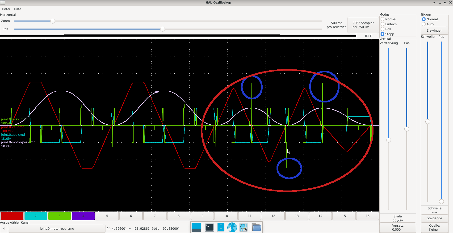testing setup 2ms benchtop profibus master 3axis geany gui ... 3 servo axis with synchronized speed control loop at 2ms