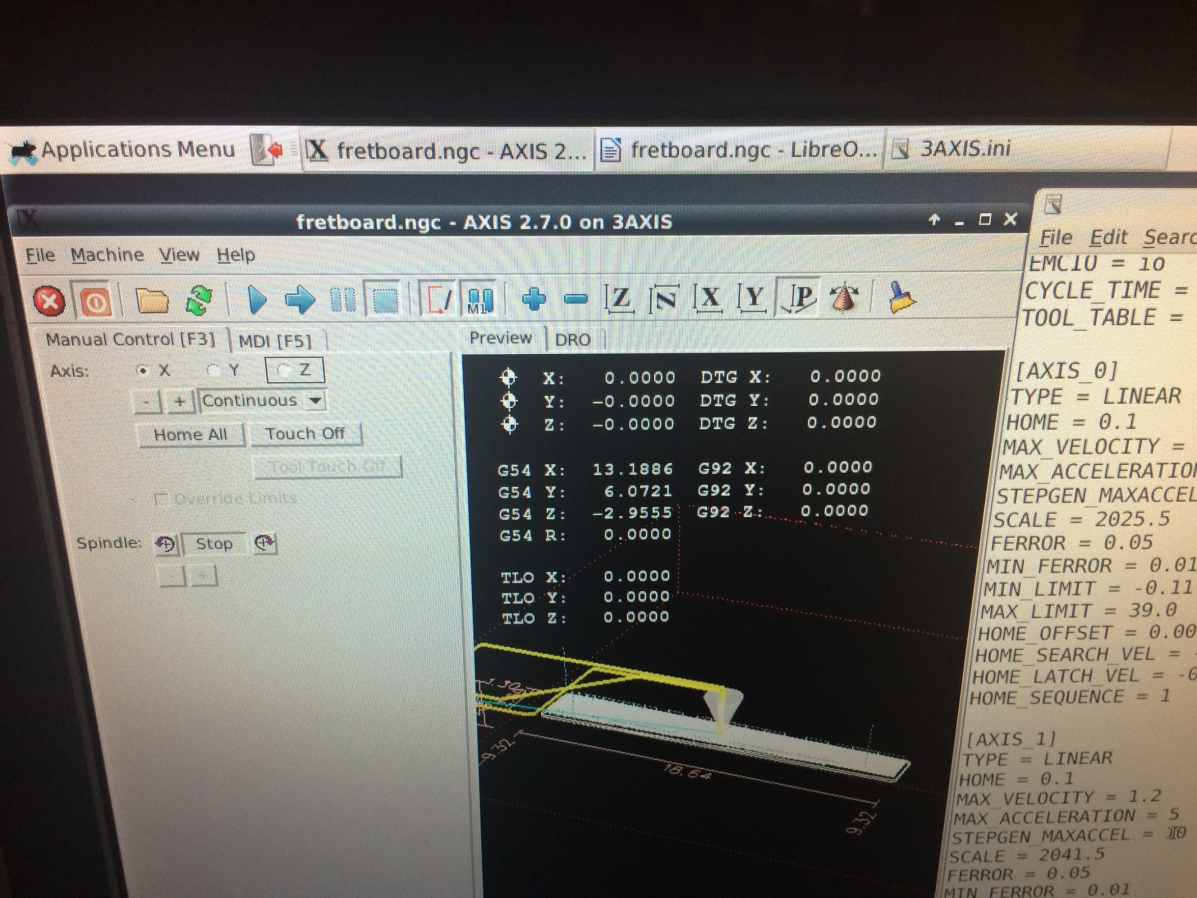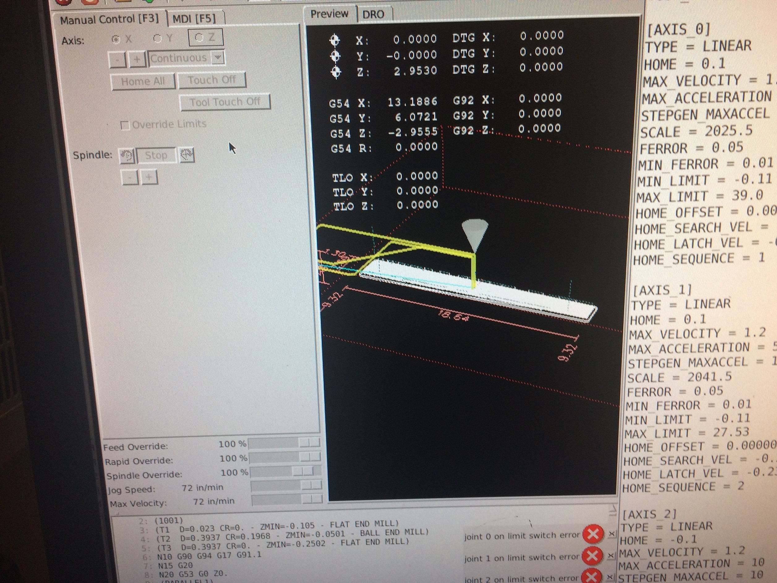 Photo 1 is homed. Photo 2 is touched off. Photo 3 never made it to z0 for tool change. Any Ideas?