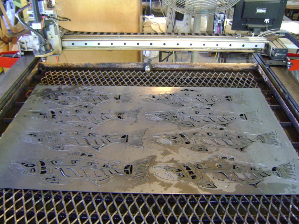I did a trial of cutting a full sheet tonight and things didn't go as planned. I did intentionally choose a part that is tricky to cut in order to stress the system and find the failure points. The sheet had 8 pieces of medium complexity, 59 pierces each using two different tools, one with thc disabled/slow cut speed and one with thc enabled normal cut speed. The first two cut with no problems. The second one had 2 bad touchoffs that required intevention, the third one had 6 failed touchoffs, the forth was a real disaster and I didn't finish it tonight. At least I am learning LCNC disaster recovery methods during testing.