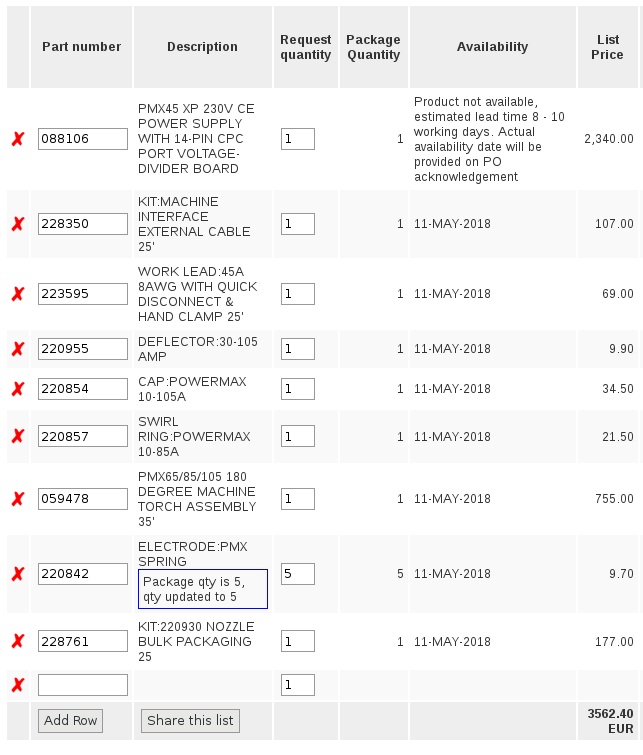 Thank you. I've asked my local dealer for a quote based on your list. 2500 EUR is about what the 088139 kit with torch, CPC and RS485 was quoted at.