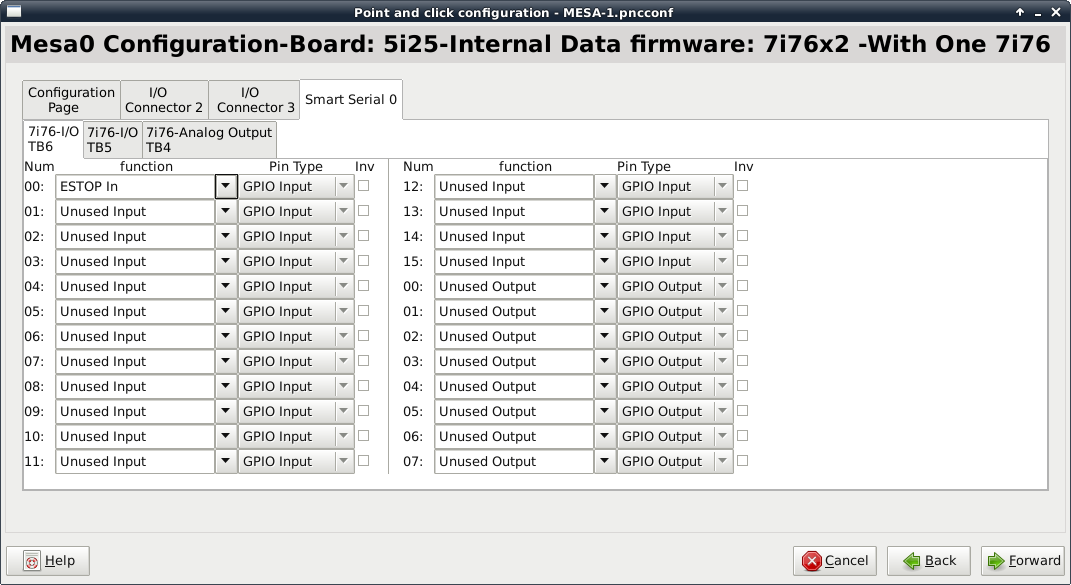 The 7i76D has 6 terminal strips attached... and I'm having some issues with getting pins configured properly...