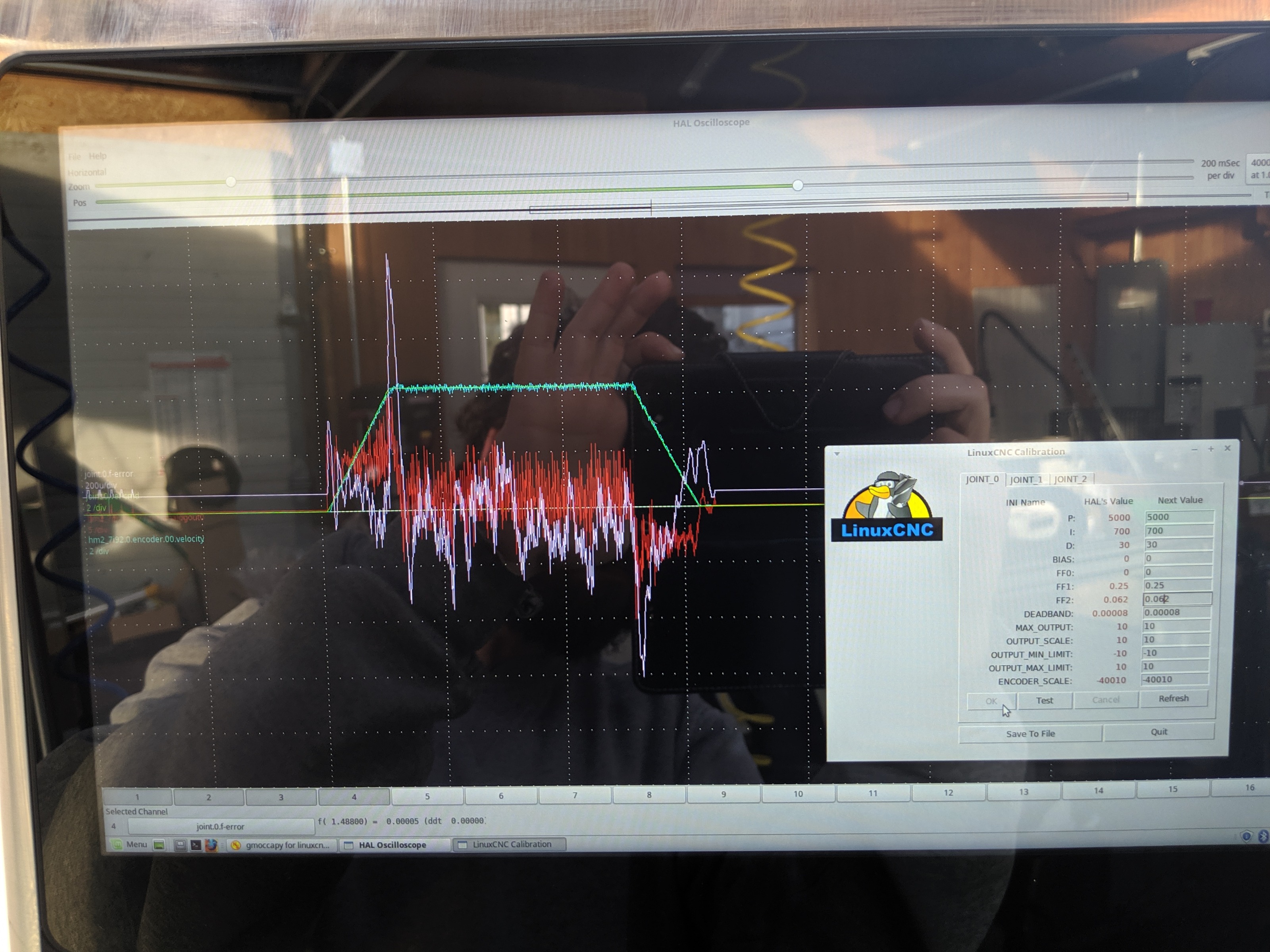 One of the reason of moving to a new computer was to increase the servo thread speed. I set it for 2khz and started getting timing errors that were not present at 1khz. This made the error of the loop smoother but did not help it.