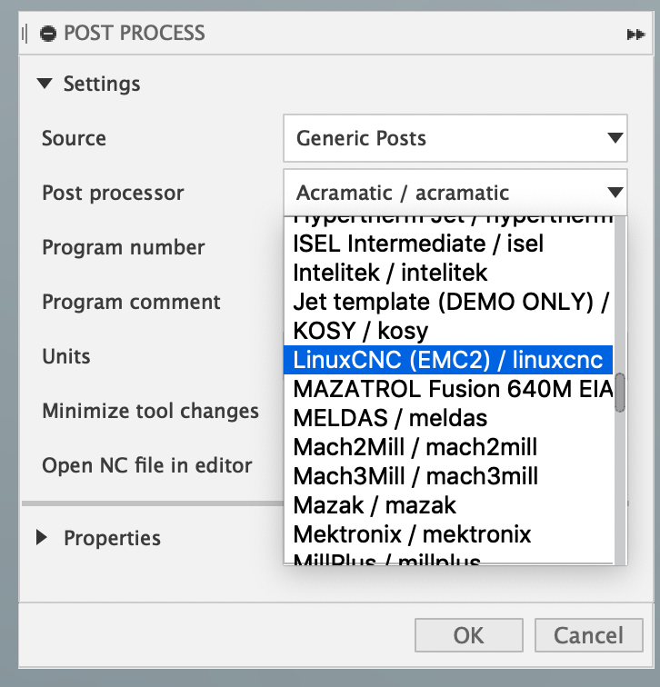 Es soll ein fuhr Linuxcnc sein bei Fusion360.